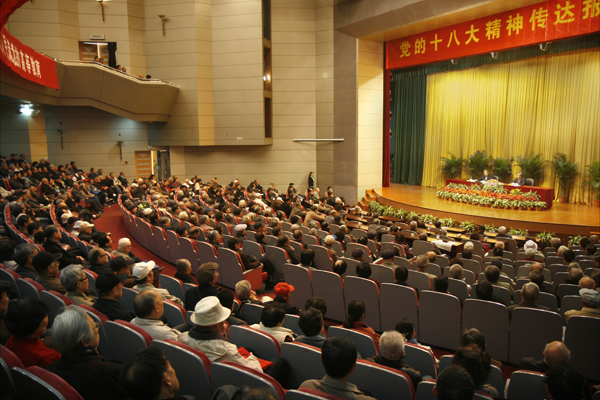 2012年11月20日下午,浙江大学在玉泉校区永谦剧场召开党的第十八次全国代表大会精神(离退休老同志专场)传达报告会。十八大代表、浙江大学党委书记金德水同志就党的十八大精神向离退休老同志作了全面传达和解读,并通报了学校党委关于认真学习宣传贯彻党的十八大精神的通知。浙江大学副校长褚健同志主持传达报告会。学校离退休党支部委员以上人员、部分党员代表参加了传达报告会。