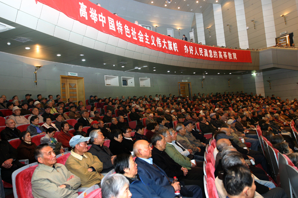 金德水书记的报告立意高远、语言生动,赢得了与会老同志的阵阵掌声。他指出:学校在创建世界一流大学的历程中,科学发展观将贯穿到高等教育办学和治校的各个方面。学校将坚定不移走以质量提升为核心的内涵式发展道路。学校将牢固确立师生为本的办学理念,努力解决师生员工最关心、最直接、最现实的利益问题。尤其是学校长期以来高度重视离退休工作,始终会把广大离退休老同志放在心上。
