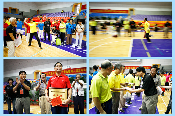 浙江大学老年人体育协会主席沈锦林,离休党工委书记、离退休工作处处长林荣堂,离休党工委常务副书记俞根法,离休党工委副书记、离退休工作处副处长朱征等为获得前六名的运动员颁发了证书和奖品,为各校区体育代表团团体总分第一名至第四名分别颁发了优胜奖、优秀奖和组织奖。
