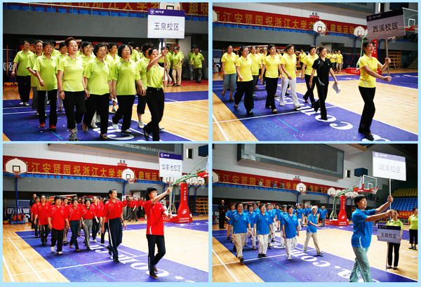 接着,举行了浙江大学第二届老年人趣味运动会开幕式,裁判员、各校区老年体育代表团身着黑、红、黄、蓝、绿色的运动服,精神饱满地在《运动员进行曲》中入场。
