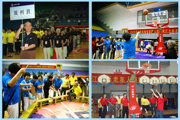 发展老年人体育事业,健康第一、安全第一、友谊第一、快乐第一,充分展示浙江大学离退休教职工积极养老、快乐养老的精神面貌,引导更多老年人投入到各种力所能及的强身健体活动中,这是浙江大学第二届老年趣味运动会的宗旨。据统计,浙江大学老年文体团队有31 个,室内活动场地达3500平方米,还有众多的校园室外活动场地提供给老同志使用。