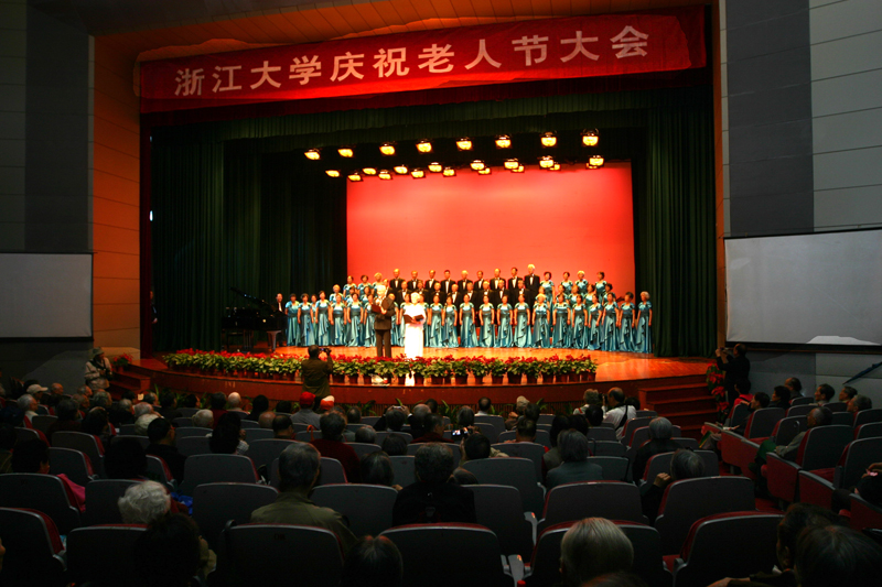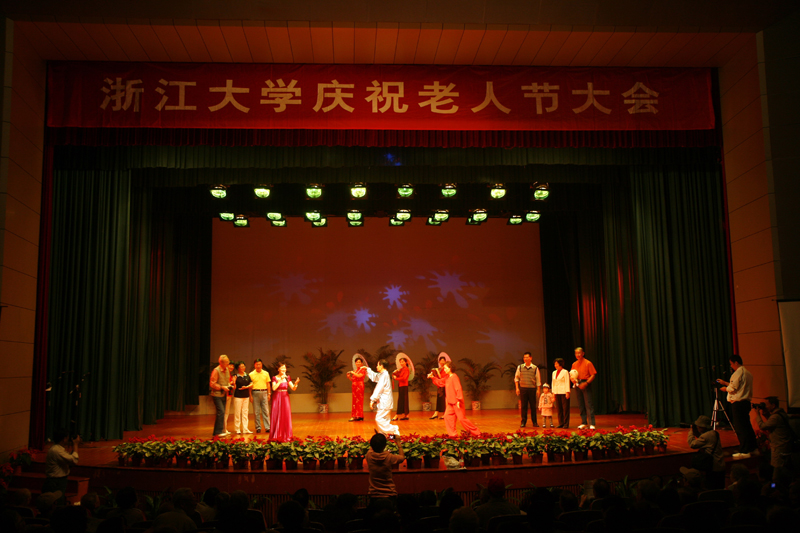 日前,一年一度的浙江大学庆祝老人节大会在玉泉校区永谦剧场隆重举行。场外彩旗飘扬、锣鼓喧天,场内座无虚席,掌声雷动。