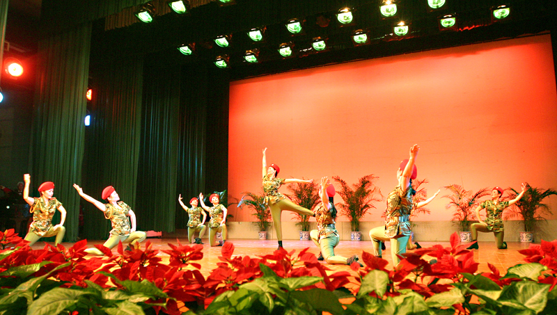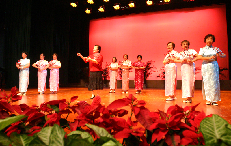 接着,诗朗诵《老年是一首秋天的诗》拉开了文艺表演的序幕,舞蹈《又见沂蒙》、《吴越弄弘》、《草原儿女》,男声独唱《在银色的月光下》,女声小组唱《清晨我们踏上小道》,表演唱《说中国》,歌曲联唱《南山不老松》等等,一个个精彩的节目,充分展示了老同志离退休后“老有所乐”的精神风采,引来了观众的一阵阵热烈掌声。