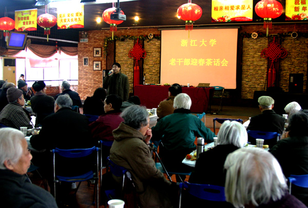 1月20日下午,在教工活动中心二楼音乐厅举行玉泉校区老干部新春茶话会,120多位老干部欢聚一堂,喜迎新春,共述学校发展。