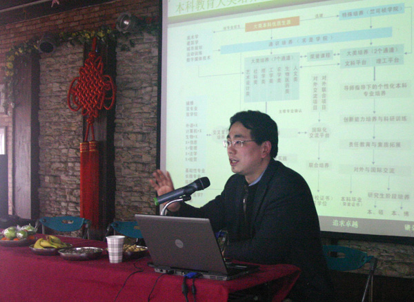 受离休老干部的邀请,我校本科生院执行院长陈劲教授向老干部们通报了我校本科生院在教学教务、科研竞赛、国际交流、教学改革、教学质量、教学资源等方面的发展情况。陈劲指出,本科生教学是学校的教育之本,我校的本科生院现在以“一横多纵”的教学模式为基础,坚持“以人为本、整合培养、求是创新、追求卓越”的培养理念,力争为国家培养出在技术、工程、高科技、领导等各方面的人才。陈劲院长的介绍使老干部对学校的建设与发展取得的成绩深受鼓舞,老干部们阵阵掌声。最后,陈劲教授感谢老干部们对我校本科生教学工作的关心和支持,也欢迎老干部们多多建言献策。