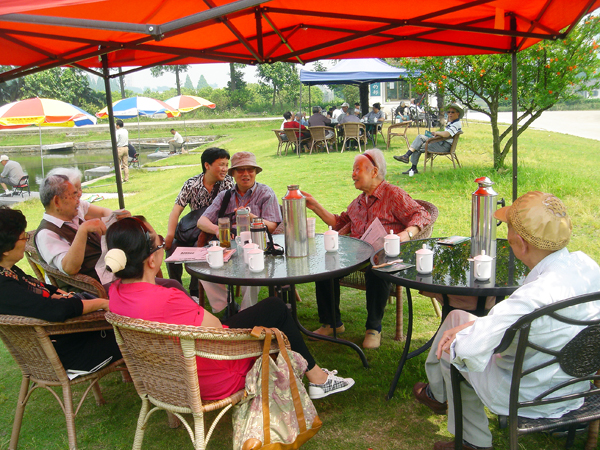 老干部一来到晶新都市村,就对优美的田园风光和清新的自然空气赞不绝口。彩色的遮阳伞,绿色的草坪,茗一口清香的龙井新茶,老干部绕有兴趣地听取了都市村负责人的介绍。随后,分批乘上电瓶车参观游览整个园区,只见四周绿树成荫,果棚连片,一派欣欣向荣景象,充分展示了现代生态农业的魅力。老干部在园内边欣赏果蔬,边利用自己在农业上的专长,在赞叹科学技术的巨大力量的同时,提出了一些建议,希望都市现代农业园区通过不断打造升级,建设成为经济效益、生态效益和社会效益更加明显的乡村旅游目的地,并建立有效的资源保护体系、景观展示体系、接待服务体系和文化内涵体系逐步形成综合发展的产业链和良性循环机制,为新农村建设和旅游业的发展、为实现伟大的中国梦作出更大贡献。(华家池校区离退休办公室来稿)