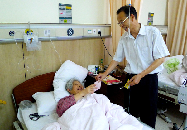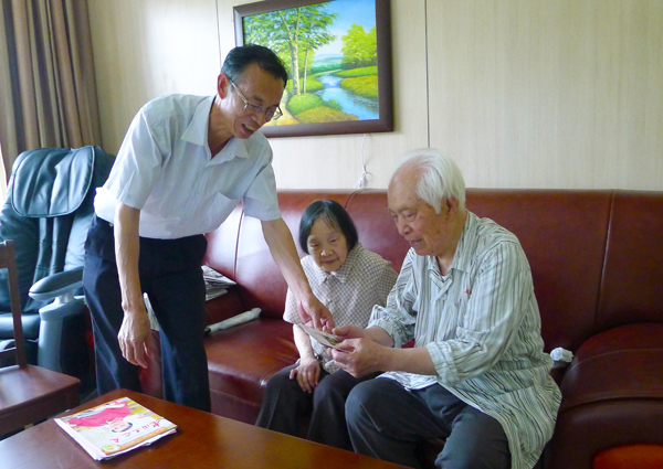 - 二、走访慰问,送“清凉”。为了让离休党员度过一个轻松愉快的暑期,在“七一”前后,湖滨校区教工党支部党员在离休党工委常务副书记俞根法的带领下,冒着酷暑对湖滨校区全体离休党员一一进行了走访慰问,并送上了慰问品。慰问中,俞书记和教工党员与离休党员们亲切交谈,及时了解他们的需求,尽最大的努力帮他们解决实际困难。对此,离休党员们非常感动,他们说:“你们平时工作这么忙,天气这么热,你们还专门跑到医院来看我们,我们很开心,你们细心周到的服务,我们很满意。”同时,离休三支部书记王高步、支部委员过学勤在工作人员的陪同下,特地前往浙江医院看望支部党员、老红军王德友同志,并给他带去了三支部被评为浙江省五好党支部的喜讯以及老同志的近况。