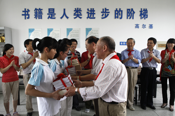 - 三、捐款购书,关心下一代。湖滨校区离休党员们党性强,觉悟高,一直以来,他们都想为党的事业发挥自己的余热。经过商议,他们一致决定将2012年度上交党费的返还部分3000余元全部用来购买学习用书300多册,并由校关工委于6月28日代为捐赠给湖州市南浔区练市一中的学生们,希望他们努力学习,学会从书中吸取营养,增进知识,最终成为国家的栋梁之才。他们的义举充分体现了老党员对青年一代的殷切希望,保持了党员的先进性,发挥了党员先锋模范作用,推动了关心一下代事业的发展。