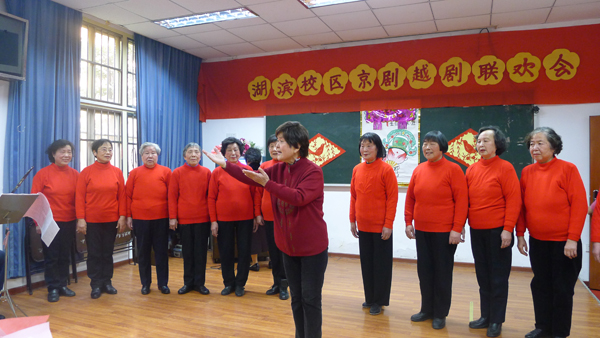 2013年12月13日下午,50余位京剧越剧爱好者齐聚在湖滨校区离退休办活动室举行京剧越剧联欢会。俞根法书记出席了本次联欢会,并致词。他说,京剧是我国的国粹,越剧起源于浙江,今天我校区两大剧成员聚在一起联欢,相互切磋交流,共同展示大家平日练习的成果。俞书记在新来临之际祝大家新年快乐,身体健康,演出愉快!