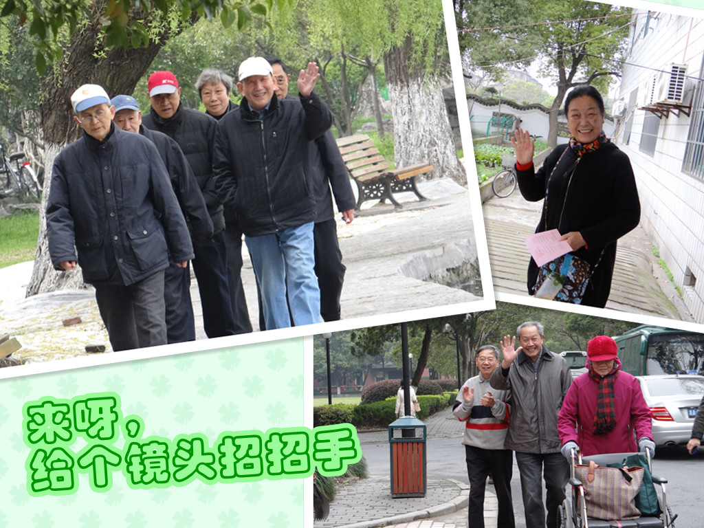 一大早,就有成群结队的老同志们欢声笑语地来到常青楼领票,开始这环池一周的“征程”。有的身着专业的运动服,步伐矫健,气质昂扬,那神采,那气场,叫人不禁侧目回望;有的抱着家里最可爱的小成员,虽然身上多了那么个“小背囊”,但精神更见抖擞,君不见,那小家伙也在挥舞着小手手昭示自己的小小踏青者的身份呢;还有的是坐着或是推着轮椅来的,他们欢笑着说,虽然腿脚不方便了,但是还是和孩子们一样,玩儿心重着呐,踏青活动又开心又舒畅,怎能缺场?