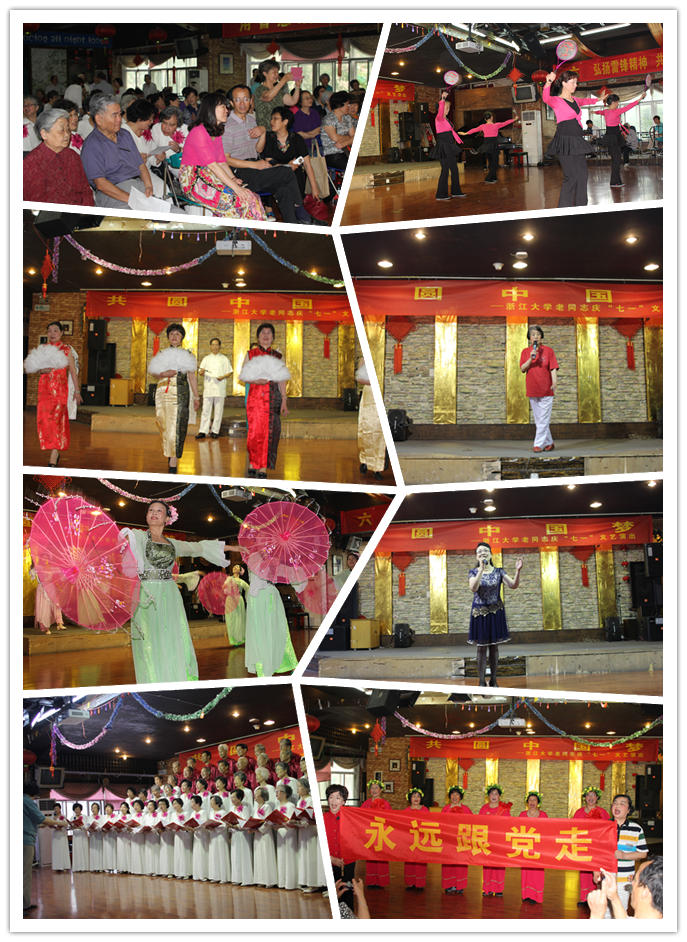 6月24日上午9时,伴随着“千山万水一起走过,永远高唱胜利的歌……”的歌曲,由离休党工委、离退休工作处主办,玉泉校区离退休办公室协办的浙江大学老同志“庆七一 共圆中国梦”文艺演出,在玉泉校区教工活动中心二楼音乐厅精彩上演,老同志们欢聚一堂,共同庆祝党的93周岁生日。离休党工委常务副书记、离退休工作处副处长朱征同志出席演出�致辞。