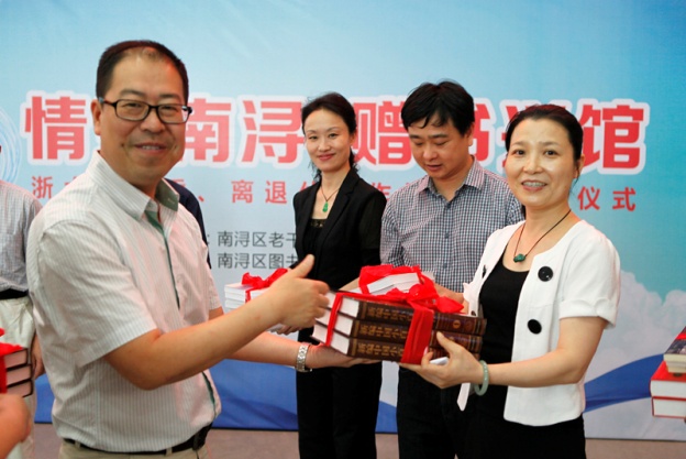 在热烈的气氛中,南浔区图书馆向浙大关工委颁发了图书捐赠证书和纪念牌。