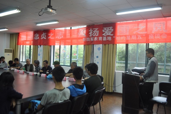 2014年10月31日下午一点半,在蓝田六舍党员之家成功举办了由蓝田学园党员素质发展中心承办的以“秉承忠贞之志,弘扬爱国之风”为主题的浙江大学新四军教育基地“相约星期五”学习教育活动。本次活动邀请了刘义夫、叶信孚、朱维忠、项啸虎、闵航、李乐鹏六位浙江新四军研究会和浙江大学关工委老同志参加。参与本次活动的同学是来自各个党支部的党员,入党积极分子及入党申请人,本次活动由第十党支部的预备党员高金锐同学主持。