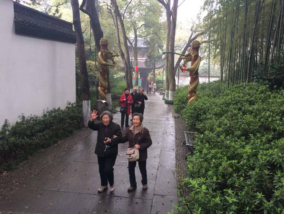 原定9点钟集合,老同志们都分外积极,有些怀着激动的心情8点半就到达了黄龙洞。离退休办的老师早已守在景区门口,把已准备好的浙大教育超市代金券发放给老同志,并热情地引导她们进入景区。