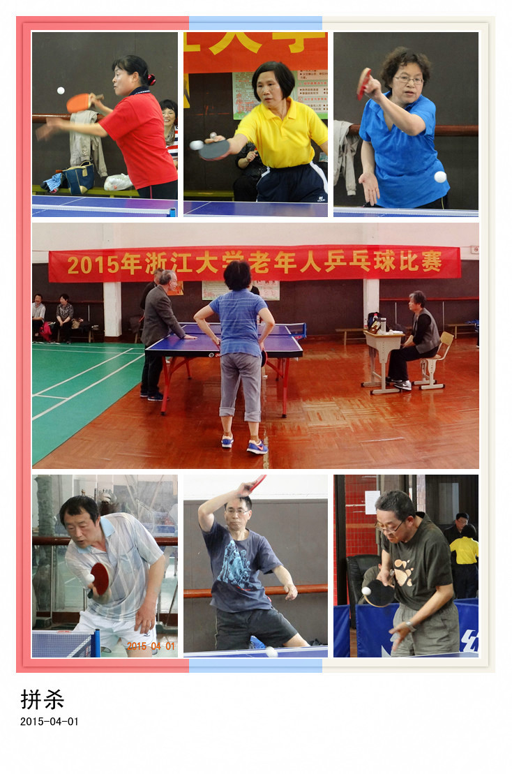 4月1日上午,一年一度的我校老年人乒乓球比赛在华家池校区邵逸夫体育馆如期举行。比赛设男子单打、女子单打、混合双打3个项目,有来自玉泉、西溪、华家池、湖滨四个校区的老年乒乓球爱好者共20余人参加。校老年体协和离退休工作处有关领导姜建华、王剑忠、李民莅临比赛并给获奖运动员颁奖。