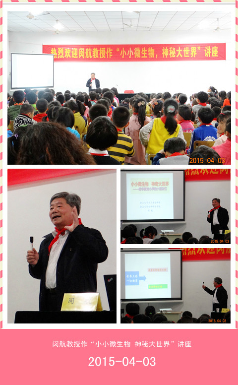 为响应党的十八大和十八届三中、四中全会精神,促进基础教育事业科学发展,在浙大关工委“相约红领巾”教育基地的支持下,华家池子弟小学举办了“小小微生物,神秘大世界” 科学讲座进校园活动。