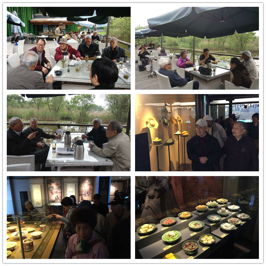 接着老干部们饶有兴趣的参观了杭州杭帮菜博物馆,二十个历史事件的场景复原,大量的文字图片史料,古近现代的文物陈列,梳理了上溯至良诸文化,秦~南北朝时期等不同历史阶段,杭帮菜传承和发展的肌理脉络。民以食为天,作为在杭州居住几十年的老人对杭帮菜有着一种特殊的感情,大家三三两两结伴参观,看着一件一件的展品和老照片,老干部们回味杭州两千多年的历史文化变迁,以及杭州城市的市井百态。参观后,有位老干部感叹:“杭帮菜系的发展真是历史悠久,博大精深”。也有老同志说:“杭帮菜的发展史也是我们杭州发展的一个写照”。