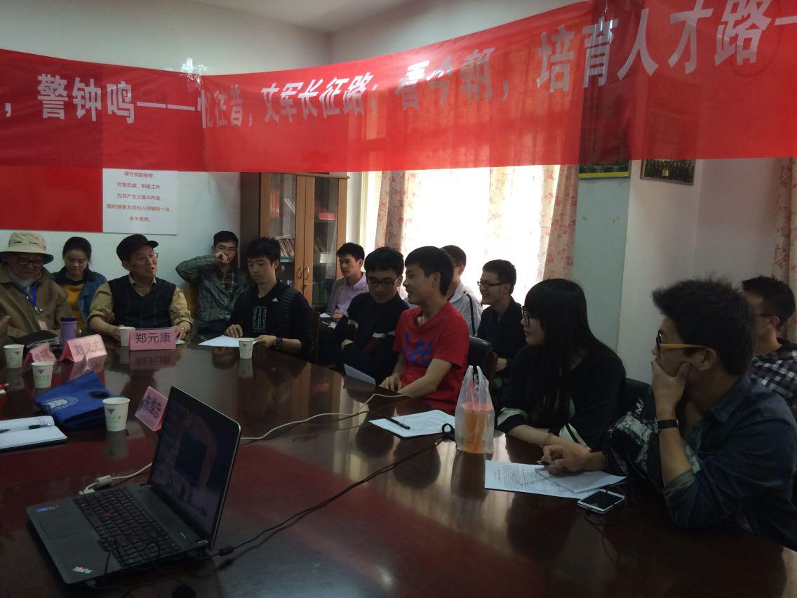 忆往昔峥嵘岁月,看今朝新秀风采。各入党积极分子小班班长及各党支部支委20多人与新四军研究会老同志刘义夫、朱维忠及浙大关工委老同志郑元康、董守珍、李乐鹏等一起围绕抗日战争胜利70周年主题进行了座谈讨论,并就《义勇军进行曲》歌词中的“起来”、“前进”话开去,引起了同学们的热烈反响。