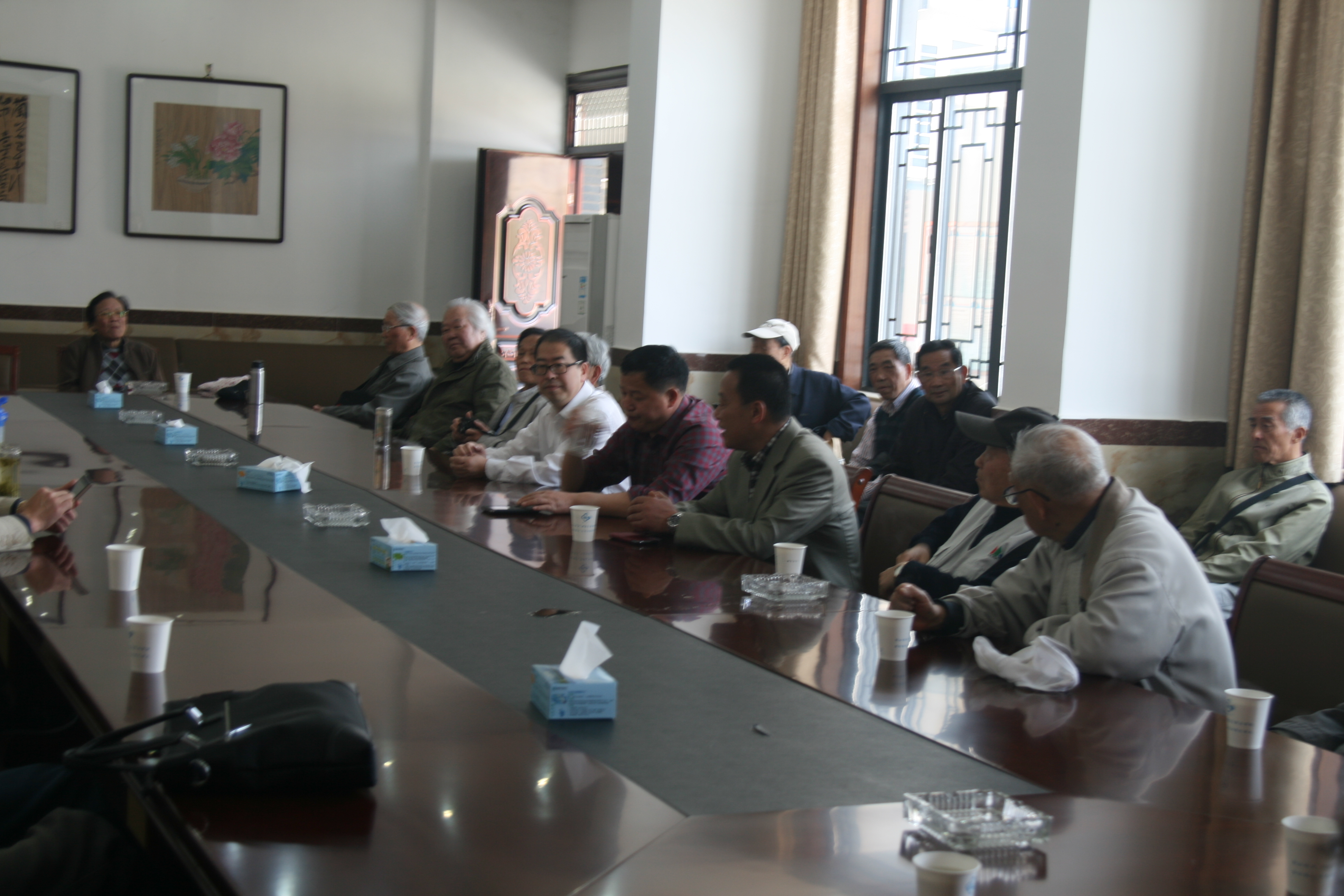 来到书画圣地、文化东衡,文化交流成为我校老同志与德清县老同志互动沟通的重要桥梁和纽带,在东衡村文化礼堂,两地老同志进行了现场书画笔会活动,以笔会友、以画传情,进一步加深了老同志之间的了解,拉近了相互间的感情。