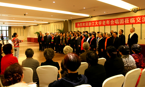 校老年合唱团建团15年以来,以传承浙大“求是”精神为己任,多次参加省市和学校组织的活动,深入街道和社区,是浙大老年文体团队中的一张“金名片”。今天他们来到随园老年公寓慰问演出,是结合社会公益活动的一种尝试。今年,校老年合唱团还将组织参加纪念抗战胜利70周年歌咏会、“歌咏求是筑梦中华”校歌合唱、校史馆义务讲解等活动,为弘扬社会主义核心价值观、促进校园文化建设发挥应有的作用。