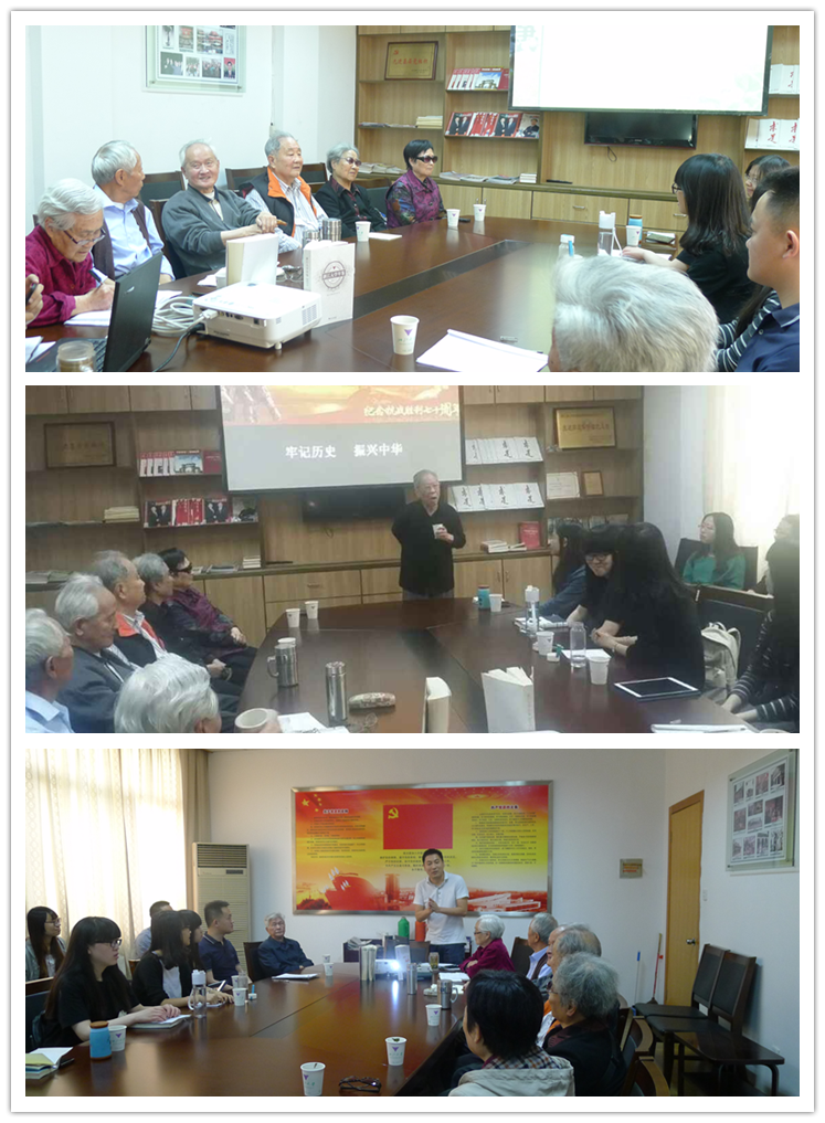2015年5月13日上午9时,西溪校区积极落实校离退休处 “纪念抗日战争胜利70周年”系列活动安排,组织召开西溪离休第二支部老干部与我校人文学院学生党员代表座谈会。人文学院办公室主任成光林同志,西溪校区离退休办商鸿同志参加座谈。