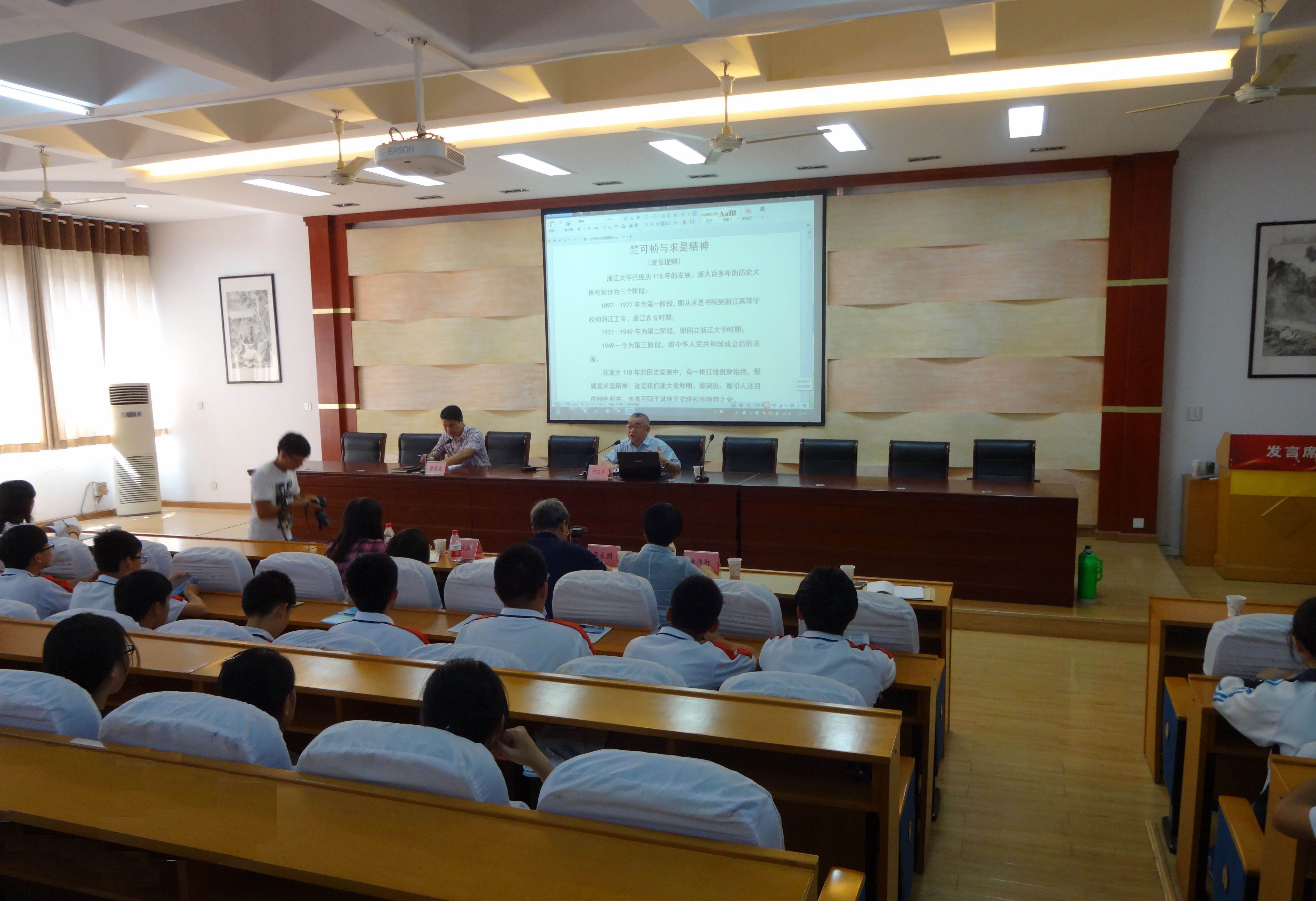 9月10日,浙江大学关工委宣讲团来到德清县高级中学,为高一新生带来了一场主题为“竺可桢与求是精神”励志教育讲座。讲座中,浙江大学何亚平教授立足浙大西迁历史,从科学家和教育家两个角度介绍了竺可桢老校长的卓越贡献。并通过大量事例,从竺校长的办学理念、师表楷模、真情博爱,以及倡言并终生践行“求是”等进行了阐述,帮助德高学子深入了解了竺可桢先生,深刻感受了浙大百年求是精神。德高学子激动不已,对何教授的精彩讲座报以最诚挚最热烈的掌声。