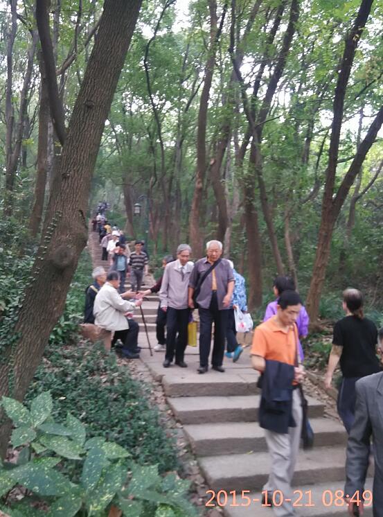 礼品券正式分发时间为8:00到9:30,其间来往的离退休人员络绎不绝,热闹非凡。九九重阳有着生命长久、健康长寿的寓意,并被赋予敬爱老人、表达关爱和孝心等内涵。西溪校区离退休办组织的此次登山活动,不仅是对离退休人员的真切的问候,更为这些许久不见的离退休前辈们提供了一次久别重逢的机会,搭建了朋友相聚的平台。欣喜、激动、兴奋洋溢在这些老朋友们的脸上,重聚的朋友们纷纷握手致意,有的携手攀谈,有的相约同路登山,有的三两成群而坐稍作休憩。他们容光焕发,神采飞扬,在怀旧的重阳节气氛中,在离退休办深切的关怀中,在老朋友们互相的真诚问候中感受到了温情和喜乐。