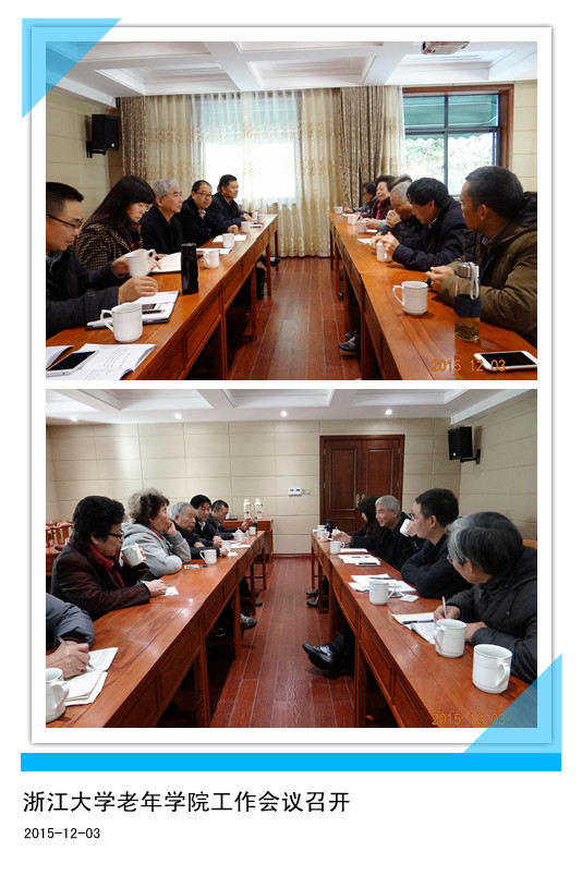 为了落实我国教育规划纲要关于“重视老年教育”的战略部署,深入学习领会教育部于9月22日在哈尔滨召开的“全国第三年龄大学联盟”会议精神,12月3日,浙江大学老年学院与离退休工作处有关领导在安吉老年学休园召开了老年学院工作会议。会上就如何进一步发展我校老年教育展开了广泛而深入的研讨。会议由老年学院分管领导王剑忠副处长主持。