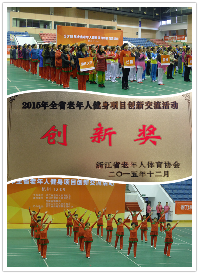 本次展演,共有来自全省各市地和行业体协的21个节目、近200位老同志参加,参赛项目类型繁多,有健身球操、健身秧歌、健身舞操等。我校老年体协玉泉校区分会的26位老同志精心编排的排舞串烧,融入了探戈.曼波.波尔卡以及恰恰等拉丁舞元素,在节目编排和形体动作及音乐编配上都有所突破和创新,是一个充满激情、励志、传递正能量的休闲健身舞蹈,展现了我校老同志良好的精神风貌,也赢得了在场观众的热烈掌声和专业评审的好评,荣获本次展演“优秀创新奖”。(浙江大学老年人体育协会)