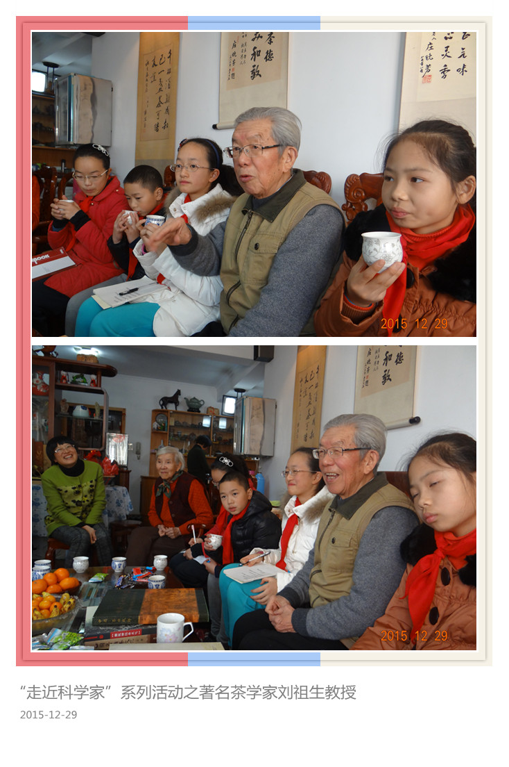“走近科学家”这一次走进的是我国著名茶学专家、浙大教授刘祖生老师的家。12月29日下午,浙大关工委“相约红领巾”教育基地华家池子弟小学“红领巾记者站”的小记者们在刘老师的家中度过了一个充实而快乐的下午。