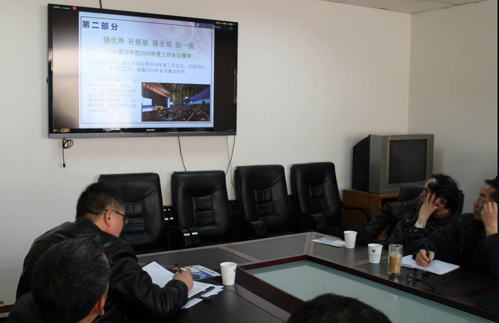 新学期,学校召开了2016年度工作会议,王庆文同志传达了学校“强优势,补短板,谋全局,创一流”的会议精神,勉励大家“坚定清醒补短板”,加强各级班子和干部队伍建设,积极响应“争创一流”的重点任务。