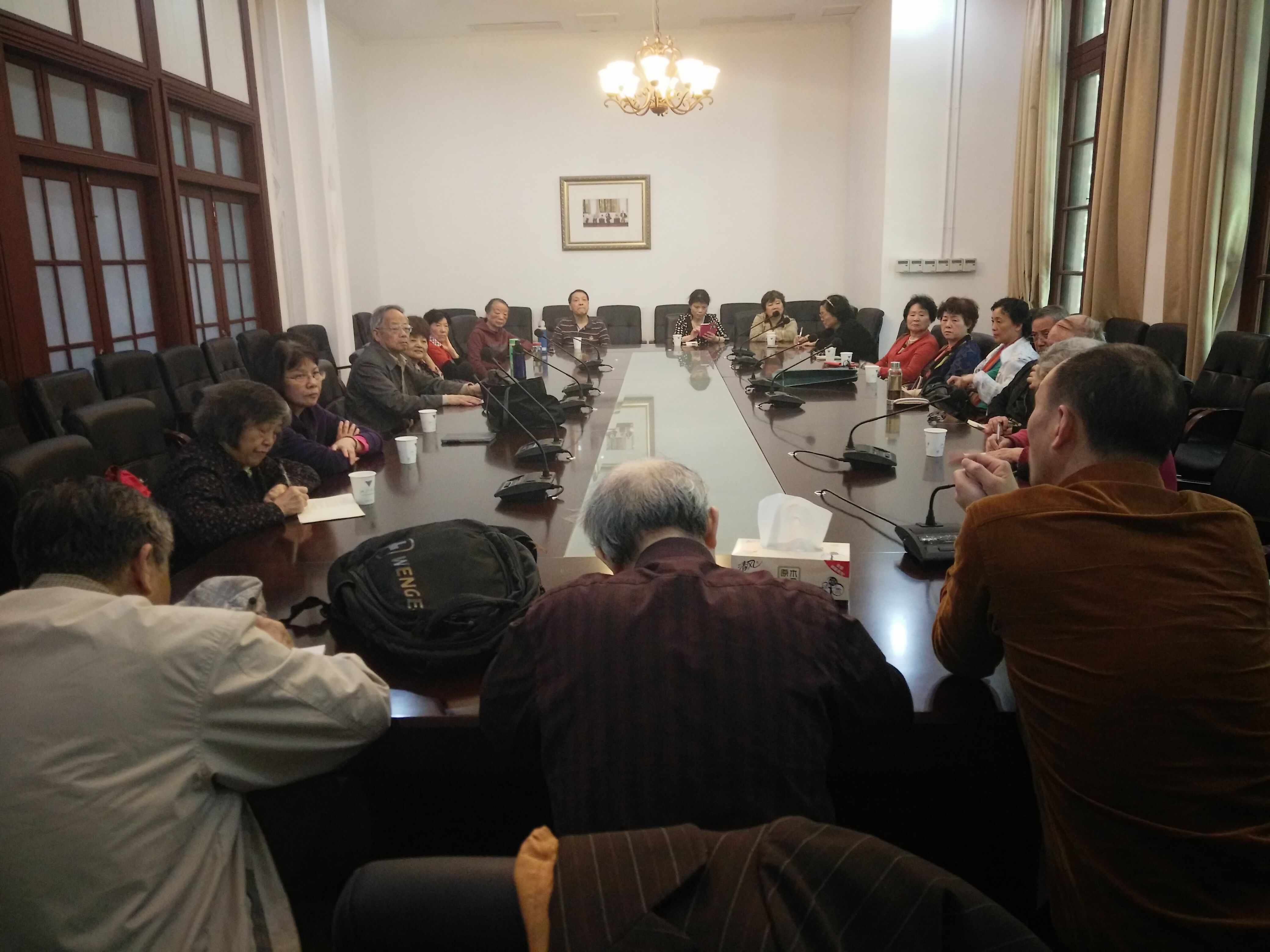 2016年5月11日,阴雨连绵多日的杭城终于迎来了久违的阳光。玉泉校区离退休办组织所属的11支文体团队负责人齐聚之江校区的光华法学院会议室,认真学习中央两办《关于进一步加强和改进离退休干部工作的意见》(以下简称《意见》),重点对今年玉泉校区的团队文化建设工作展开讨论。会议由玉泉校区离退休办主任俞文胜同志主持,处领导朱征同志出席会议。
