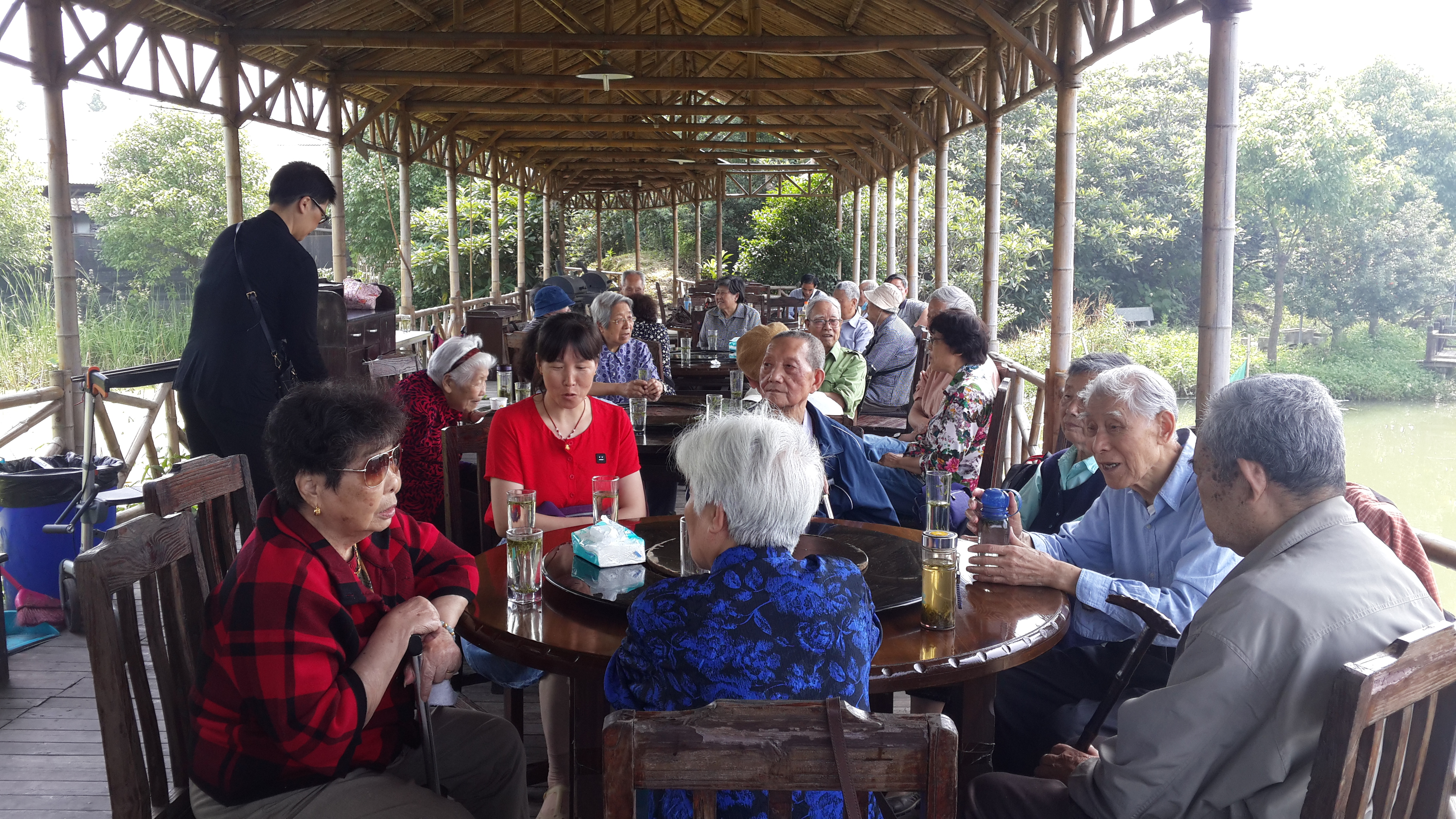 6月6日上午,华家池校区离休党总支组织老干部党员在余杭水乡渔村召开“两学一做”集体学习座谈会。