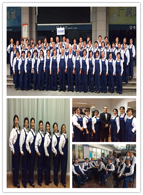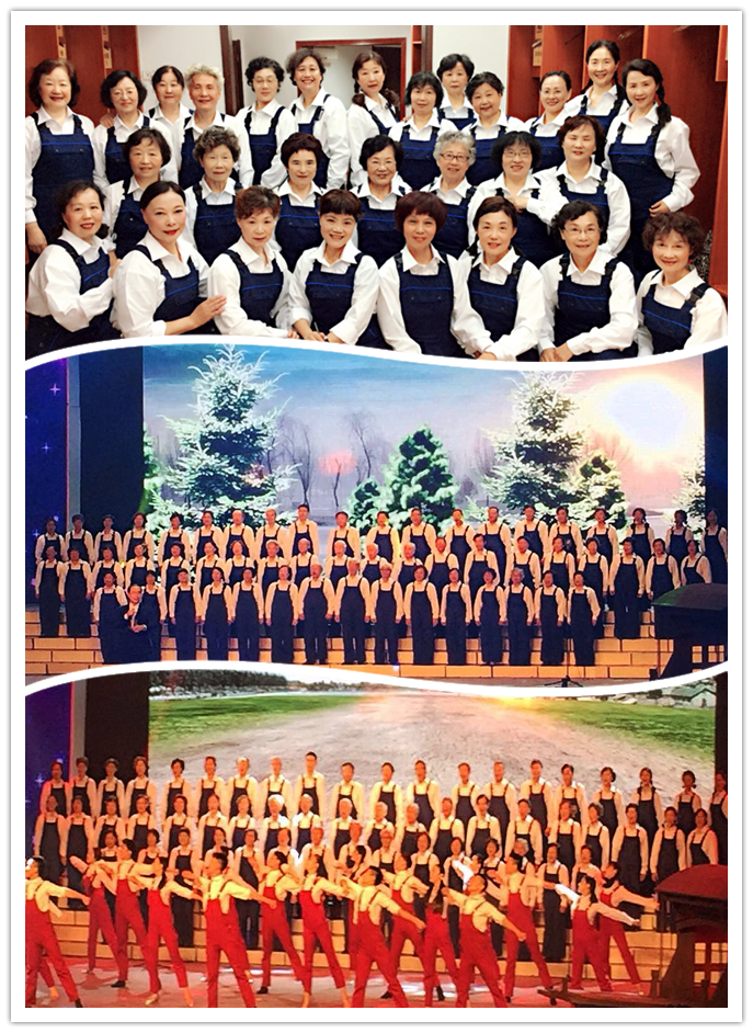 我校老年合唱团55位团员上台表演了《革命人永远是年轻》、《我们走在大路上》这两首歌曲。他们身穿白衬衫和蓝色工装裤,精神饱满地展示了那个年代奋发向上的风貌。