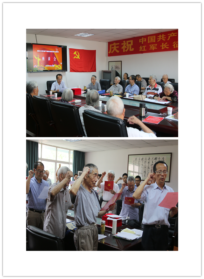 座谈会后,老少党员一起合影留念。玉泉校区离休党总支还为老党员颁发了党的生日荣誉证书和纪念品。