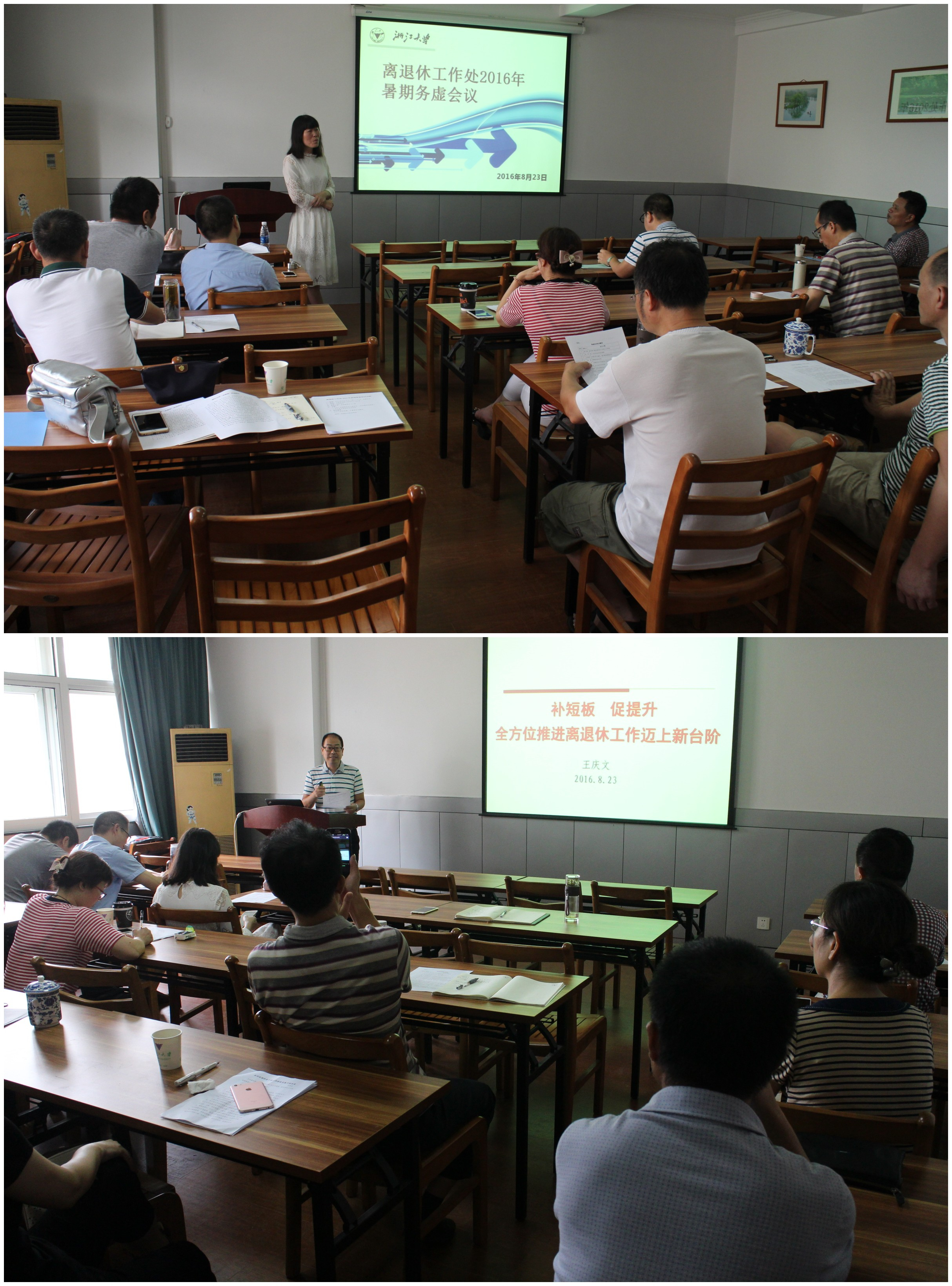 8月23日上午,我处召开2016年暑期务虚会议,贯彻落实中办发〔2016〕3号文件精神,围绕“汇聚老同志助推发展正能量”主题,找准补齐工作短板,进一步加强和改进我校离退休工作。会议由朱征同志主持。