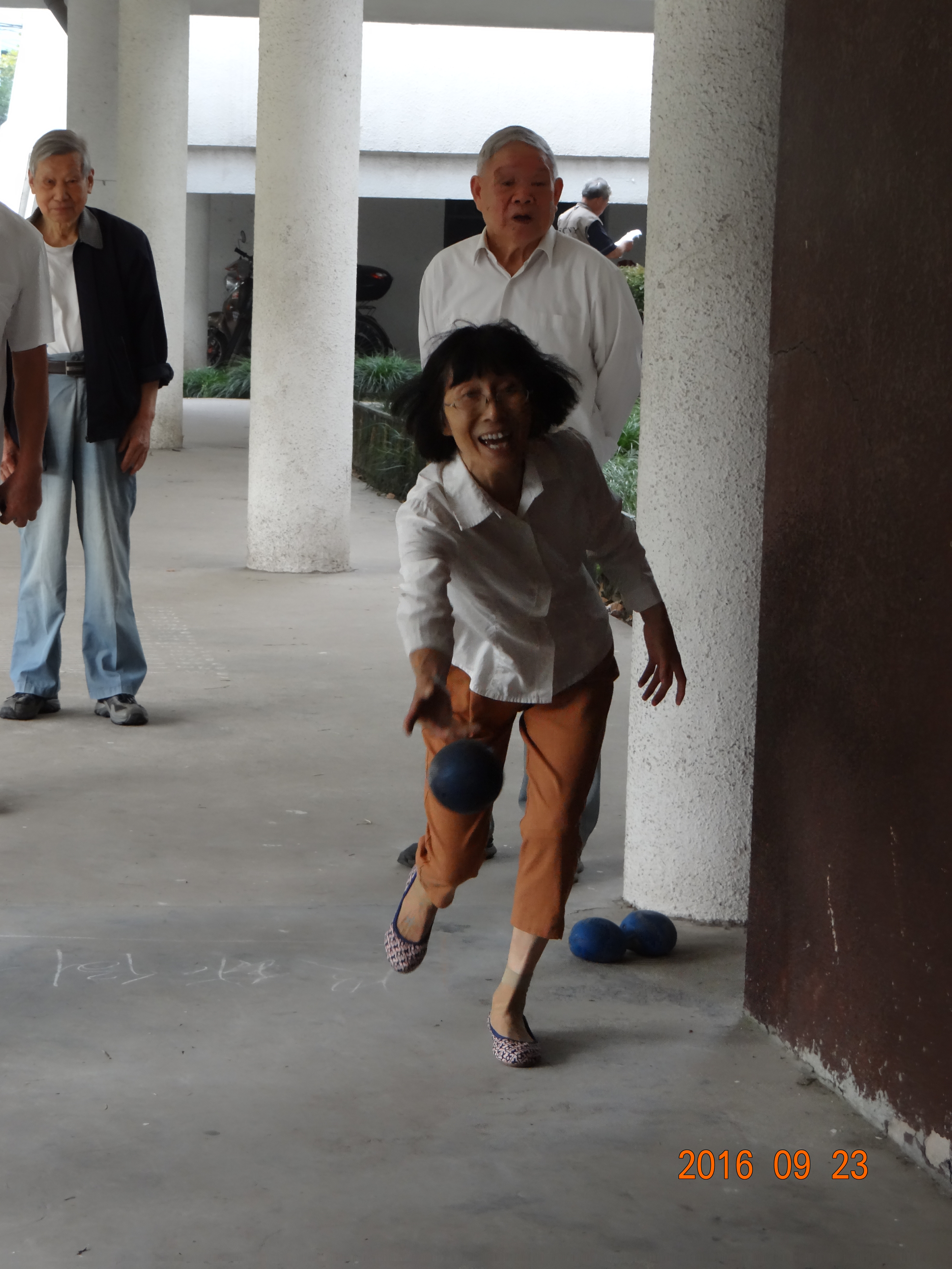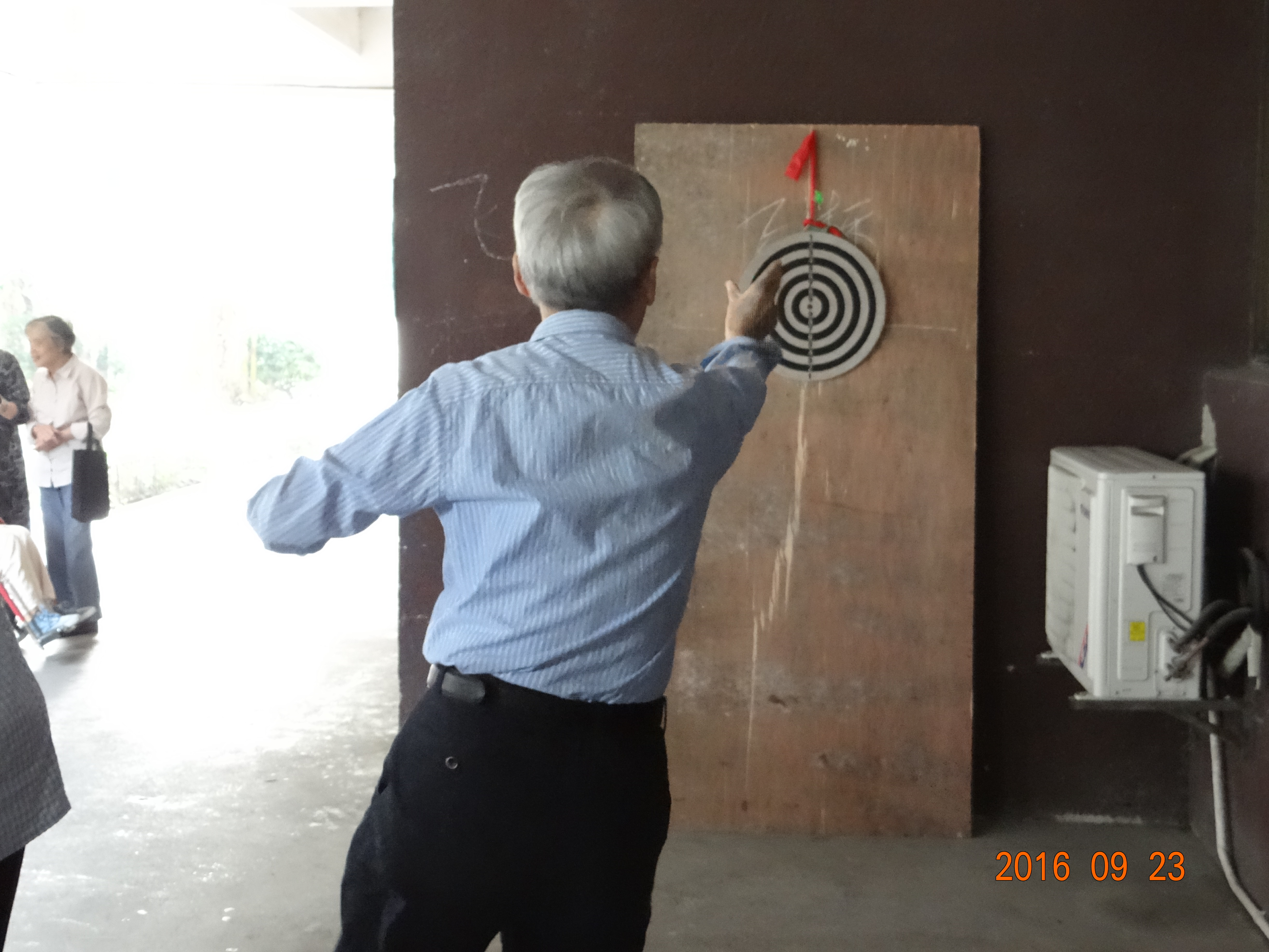 定点投篮、飞镖掷准、障碍赶球、托球接力、皮球倒靶等在内的九个比赛项目集娱乐性、益智性与健身性于一体,牵动起老人们童年的记忆,唤起纯粹的儿时欢乐。“钓鱼”一族细心揣摩着控制的技巧,慢骑一族耐心找寻着平衡的技巧,投篮者们潜心练习着掷准的技巧——他们专业的姿态招式和帅气的掷准瞬间让人怎么都看不出是耄耋之年甚至鲐背之年的老人,更有109岁高龄的吴芝英老师和100岁高龄的唐觉教授也坐着轮椅来到现场参与了有趣的活动。老同志们说,秋高气爽的日子里看看秋景、玩玩游戏、聚聚好友,感觉真的棒极了!