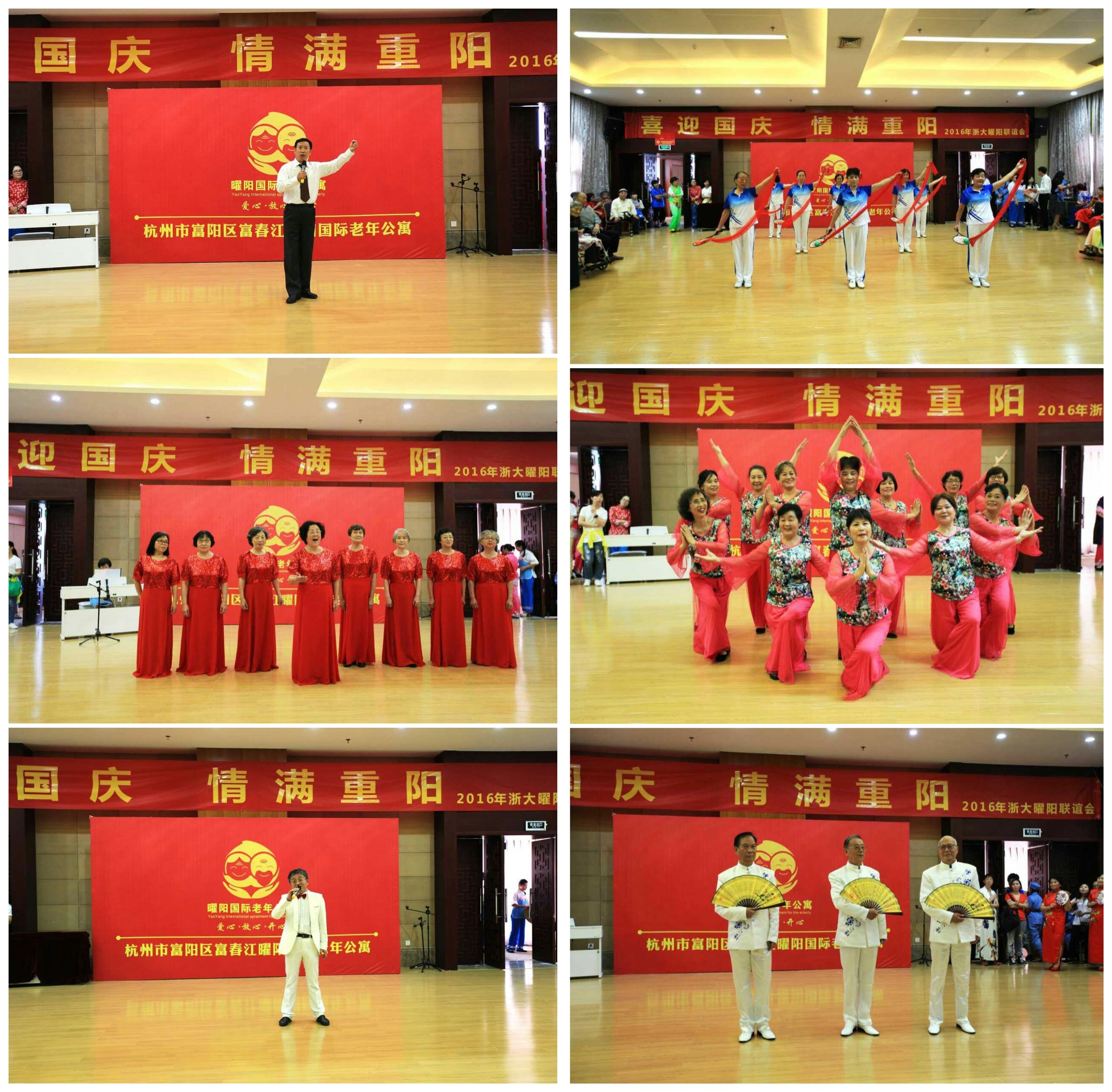 “国庆”“重阳”双节来临之际,为唱响节日主题, 2016年9月30日,浙江大学玉泉校区离退休办组织文体演出小分队来到了富春江曜阳国际老年公寓,和他们联合主办“喜迎国庆 情满重阳”联谊活动,为公寓的老人们献上一份贴近生活、贴近群众的文化盛宴。