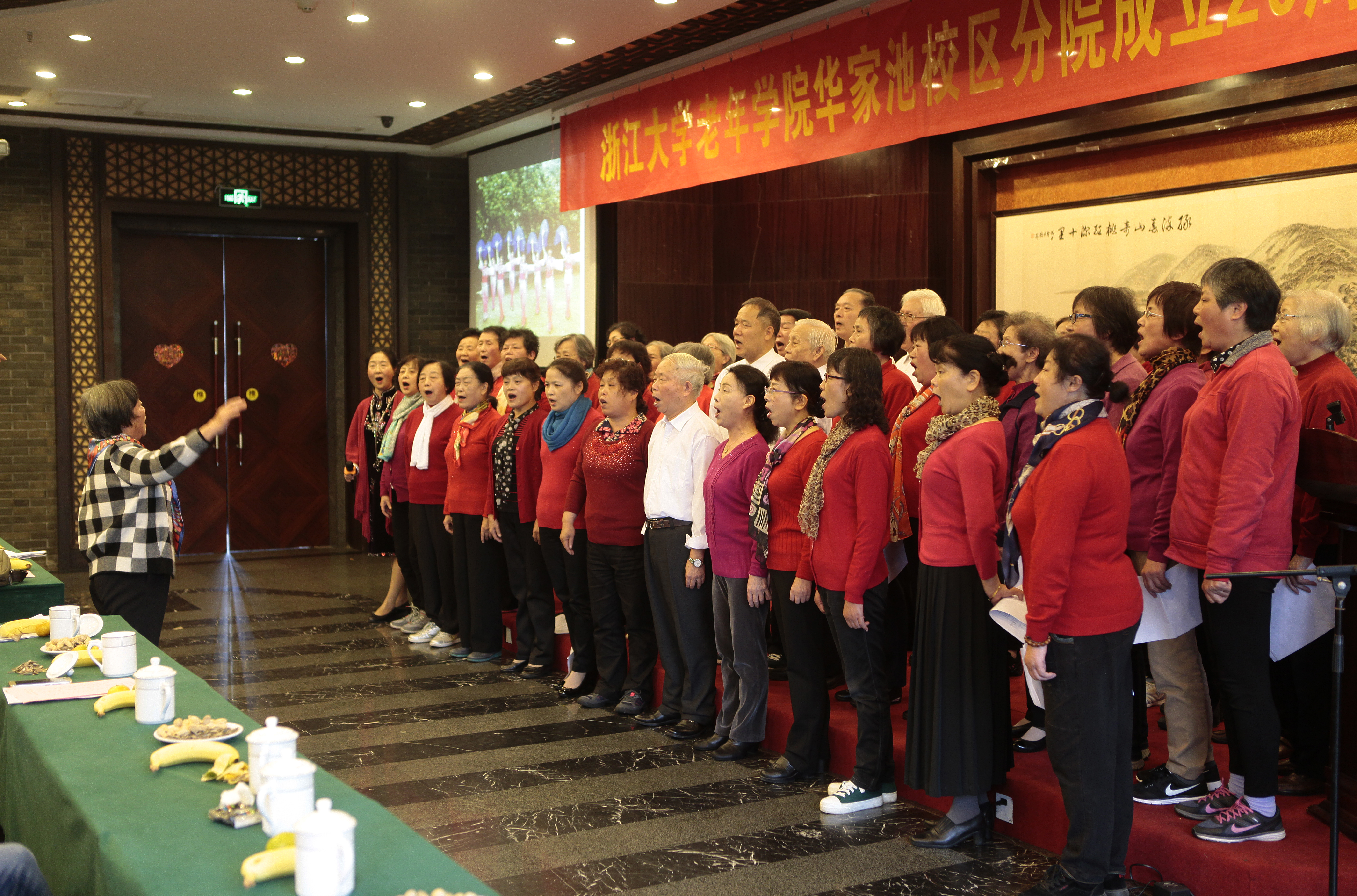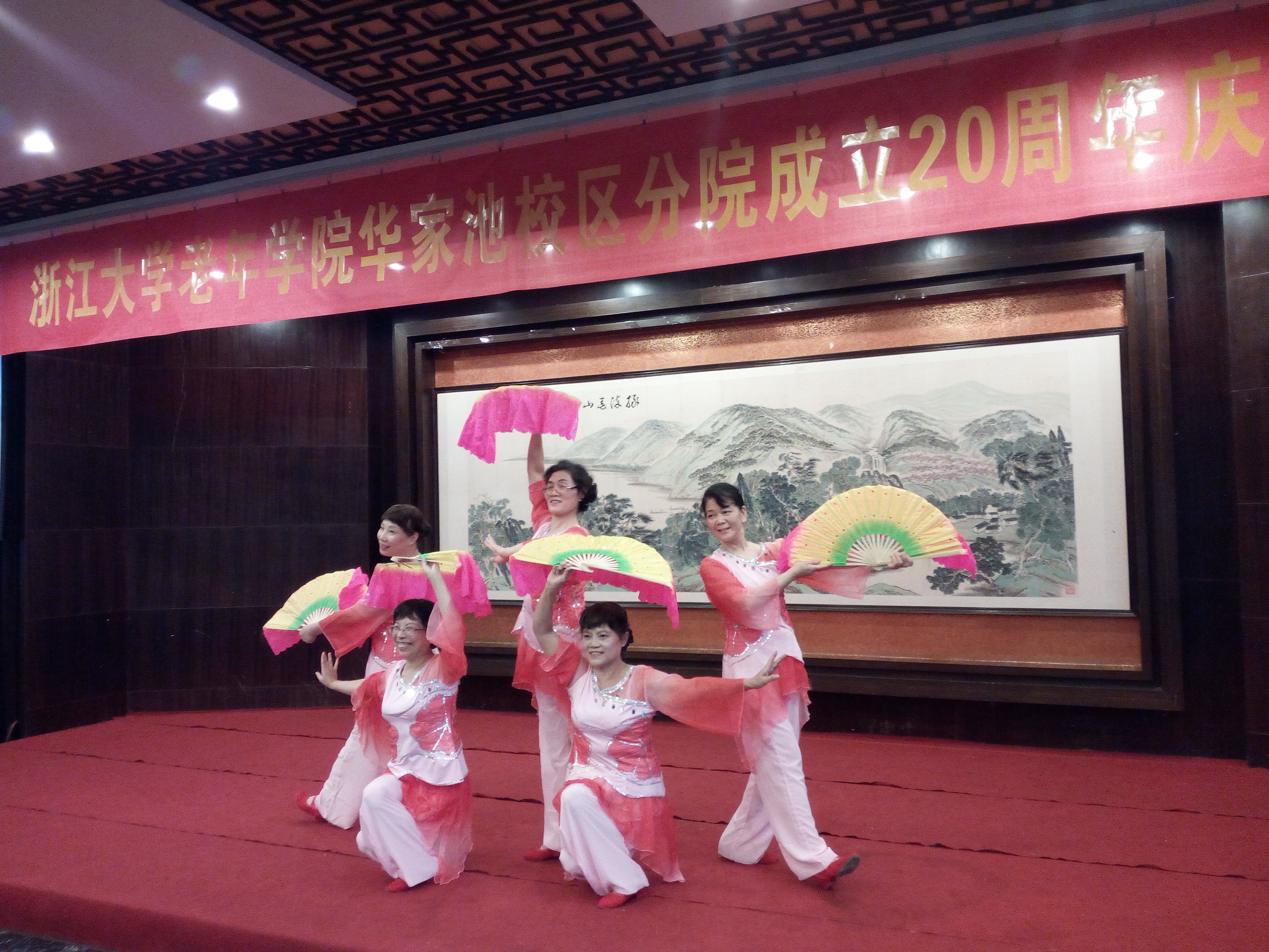 庆祝会由浙江大学老年学院华家池校区分院院长叶孟兆老师主持。浙江大学离退休工作处副处长兼离休党工委副书记王剑忠、浙江大学老年学院院长林荣堂到会祝贺并致词,向老年学院分院历任院长、老师和班长表示衷心的感谢,坚信浙江大学的老年教育乘国务院《老年教育发展规划(2016一2020年)》颁发的东风一定能取得更大的发展和成果!老年学院的老院长熊农山、副院长徐群娥在会上回顾了老年学院的创建和发展历程,大家对他们为老年学院作出的无私奉献致以一阵又一阵的掌声。会上,表彰了华家池校区老年学院分院的优秀学员,并向他们颁发了纪念品。声乐班、越剧班、舞蹈班的学员和老年舞蹈队在会上载歌载舞,表达了自已在老年学院学习的喜悦之情。摄影班、花鸟画班学员向大家汇报了学习成果,展示了他们的部分获奖作品。