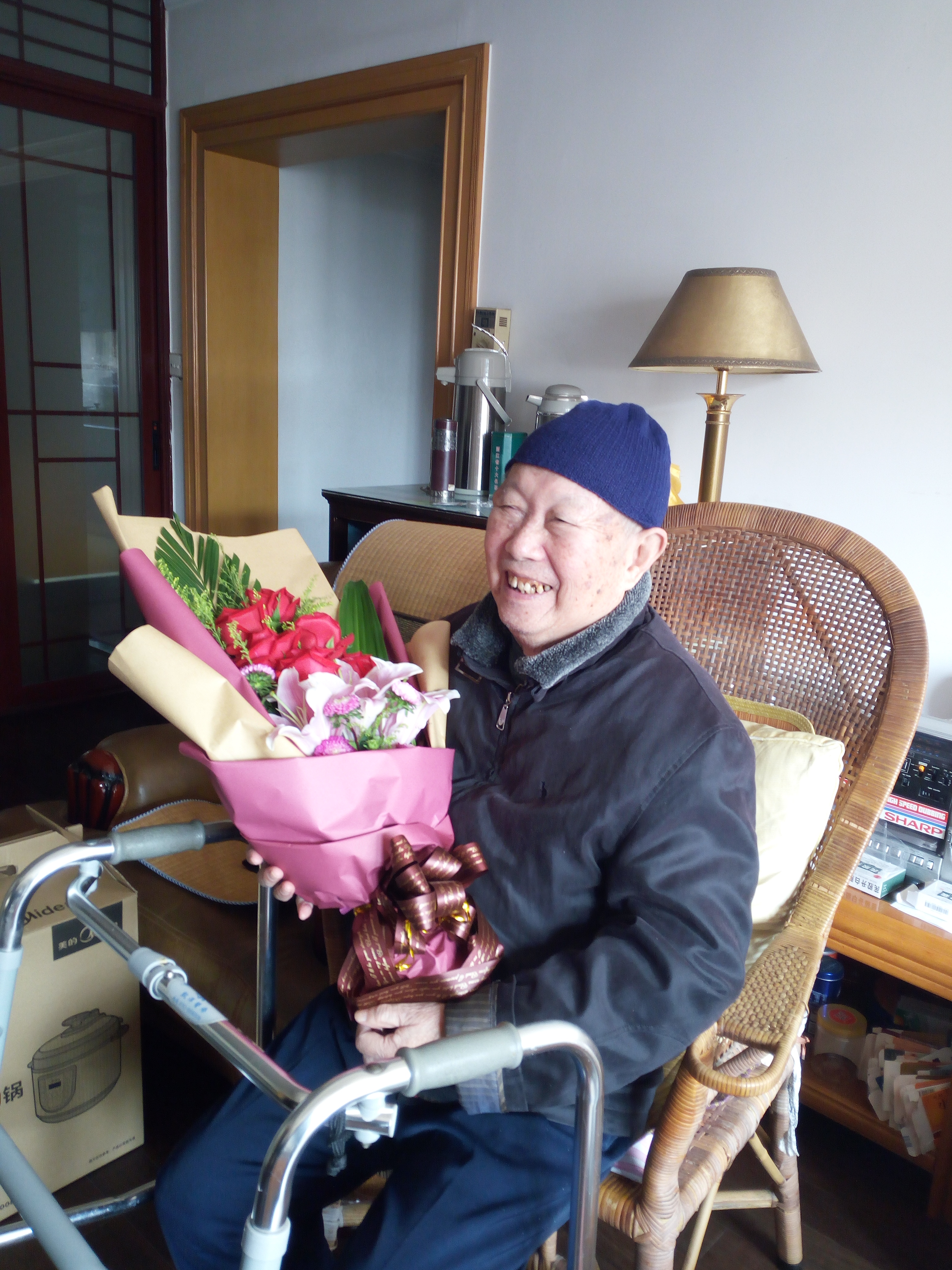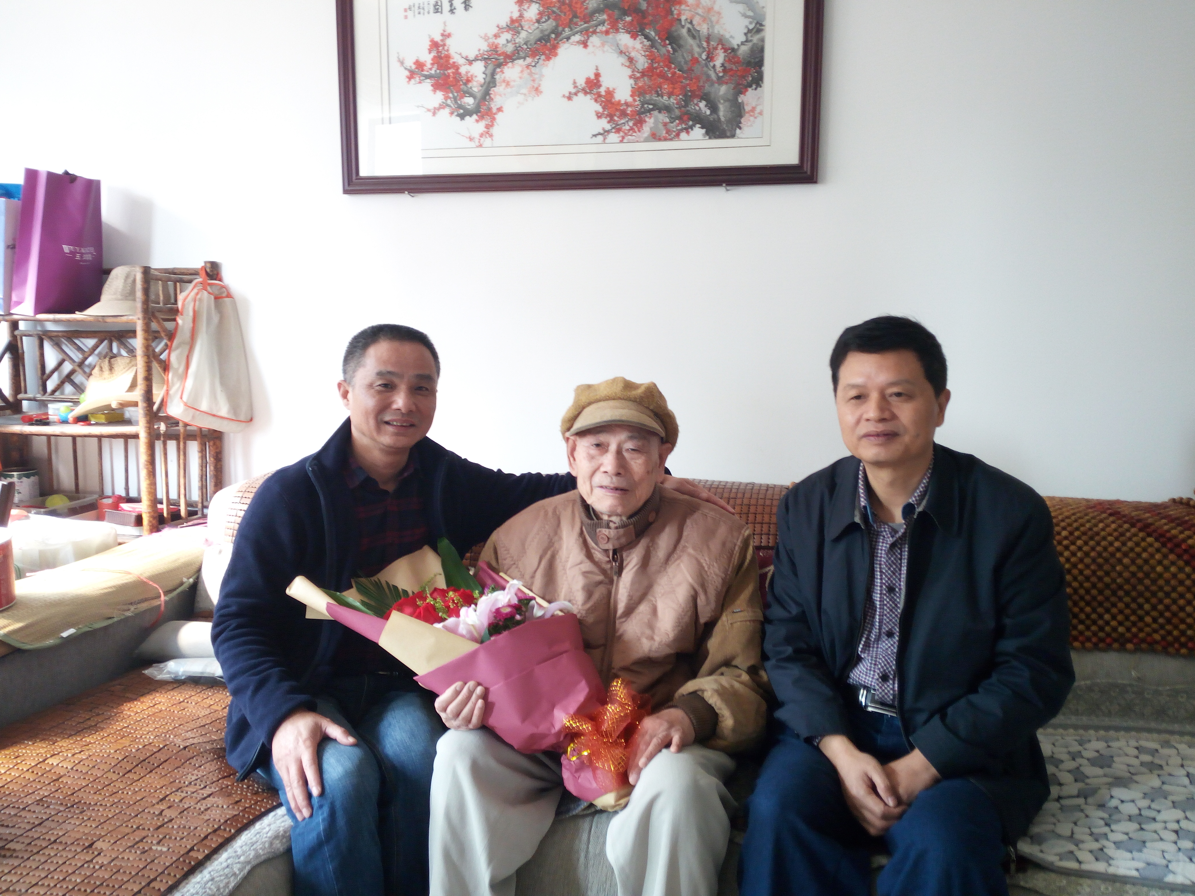 离休党总支根据老干部年老体弱、行动不便的特点,自去年开始就采取上门祝寿。总支书记王剑忠、离退休办主任郦平先后来到两位老人家中,向老寿星送上生日蛋糕、鲜花和纪念品,为他们送去党组织的关怀和祝福,祝愿老同志生日快乐,生活愉快,健康长寿。
