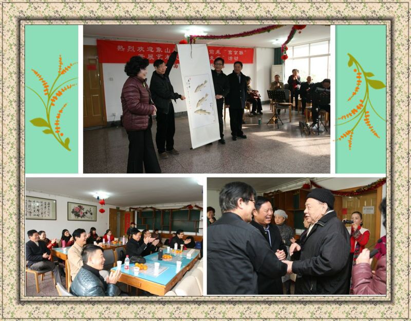 首先,“高京联”副会长汪琴�老师对象山半岛京艺社诸位同好的到来表示热烈欢迎!象山县文化局董云副局长作了极富艺术激情的答辞。吴开献社长代表象山半岛京艺社向“高京联”赠送了书画作品。