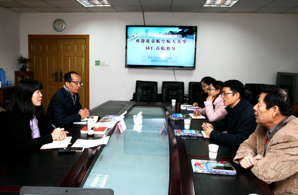 11月29日上午,北京航空航天大学离退休工作处处长兼书记、关工委秘书长白�宇,离退休教职工党委副书记曲珊,离退休工作处综合办公室主任科员于金山,离退休工作处退休科科长马岐,离退休工作处离休办公室科员肖昱一行5人赴我校调研,我校离休党工委常务副书记兼离退休工作处副处长朱征,离退休工作处副处长兼离休党工委副书记韩东晖参加座谈交流。