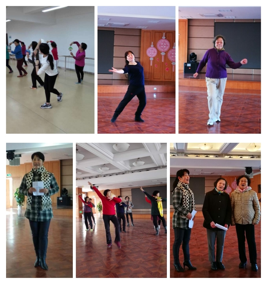 9时联欢会正式开始,队长首先将排舞队一年来开展的活动进行了小结,对2017年活动的开展初步的设想。之后大家以小组为单位或几人组合或独舞多种形式展示一年来学习排舞的成果。特别要提的是舞蹈基础很好的周红,她独舞‘九儿’,优美的舞姿赢得阵阵掌声;队里最年轻的花儿,自告奋勇献上一曲红楼梦主题曲‘枉凝眉’,声情�茂,婉转动听;董静的一曲‘女人花’,女中音音色圆润好听,倾倒所有人;小邢、小甘的�十套柔力球,刚柔结合,随着优美乐曲翩翩起舞,给大家带来美的享受使人陶醉;新队员参加的群舞“尊巴尊巴”,跳得热情有序;老队员宝刀不老,王国荣的三人小组唱,陈老师的“伦巴恰恰”,何老师的“桑巴”,临场发挥的田老师“卓玛”都是即兴表演。我们的义务艺术指导冰雪姐妹也参加了这次活动,整个联欢会沉浸在一片欢乐谐和的氛围之中。