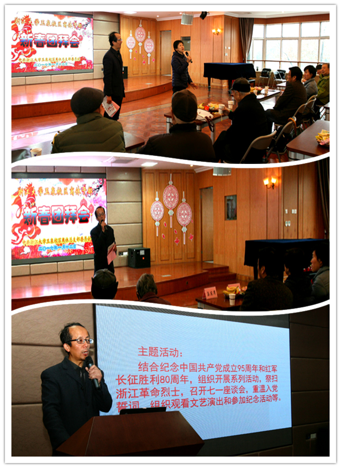 玉泉校区党工委副书记兼管委会副主任张幼铭,校医院党委副书记缪峰,校工会玉泉校区办公室主任王晗等参加团拜会,共祝离休干部幸福安康!新春愉快!