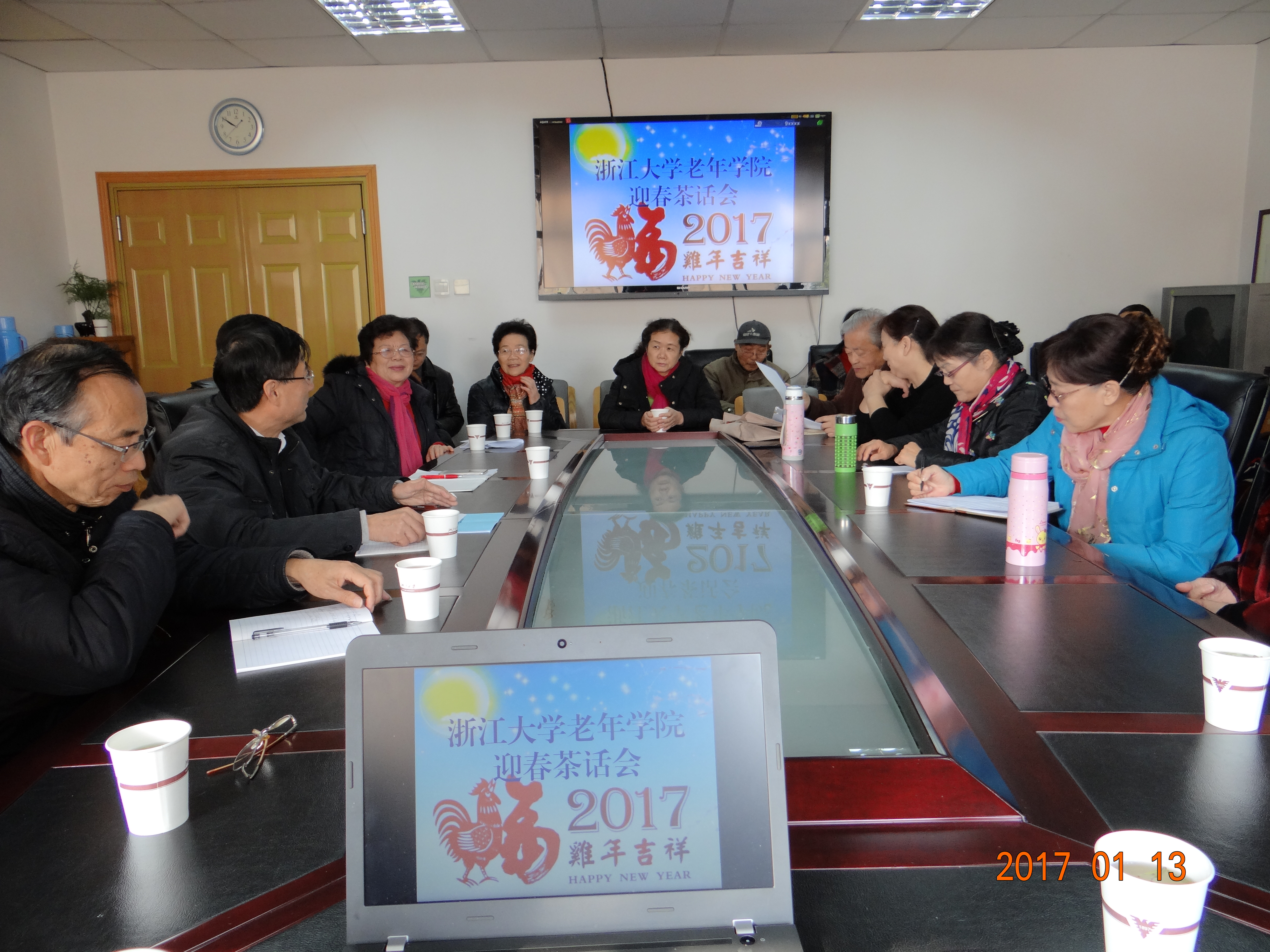 1月13日上午,浙江大学老年学院迎春茶话会在处会议室隆重举行。学院领导、任课教师、各班班长及各校区有关工作人员参加会议。会议由离退休工作处副处长、离休党工委副书记王剑忠主持。
