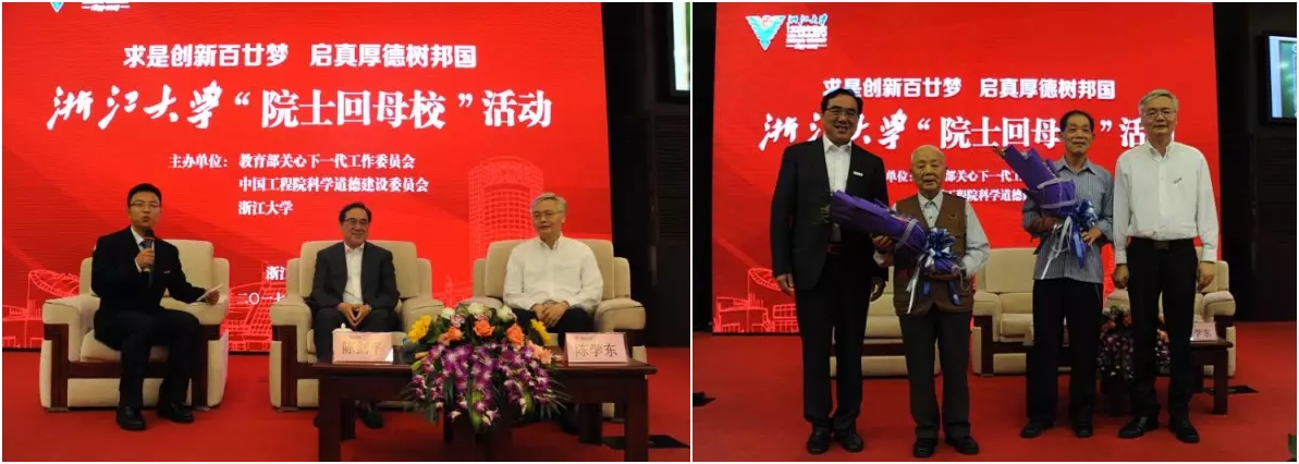 两位院士当年的老师也应邀来到访谈现场,回忆起院士当年求学的点滴往事,浓浓的师生情、深深的求是梦,激起在场学子的强烈共鸣。浙江大学副校长、校关工委主任张宏建向两位院士赠送了记有他们当年入学照片和求学期间的成绩单的纪念册。