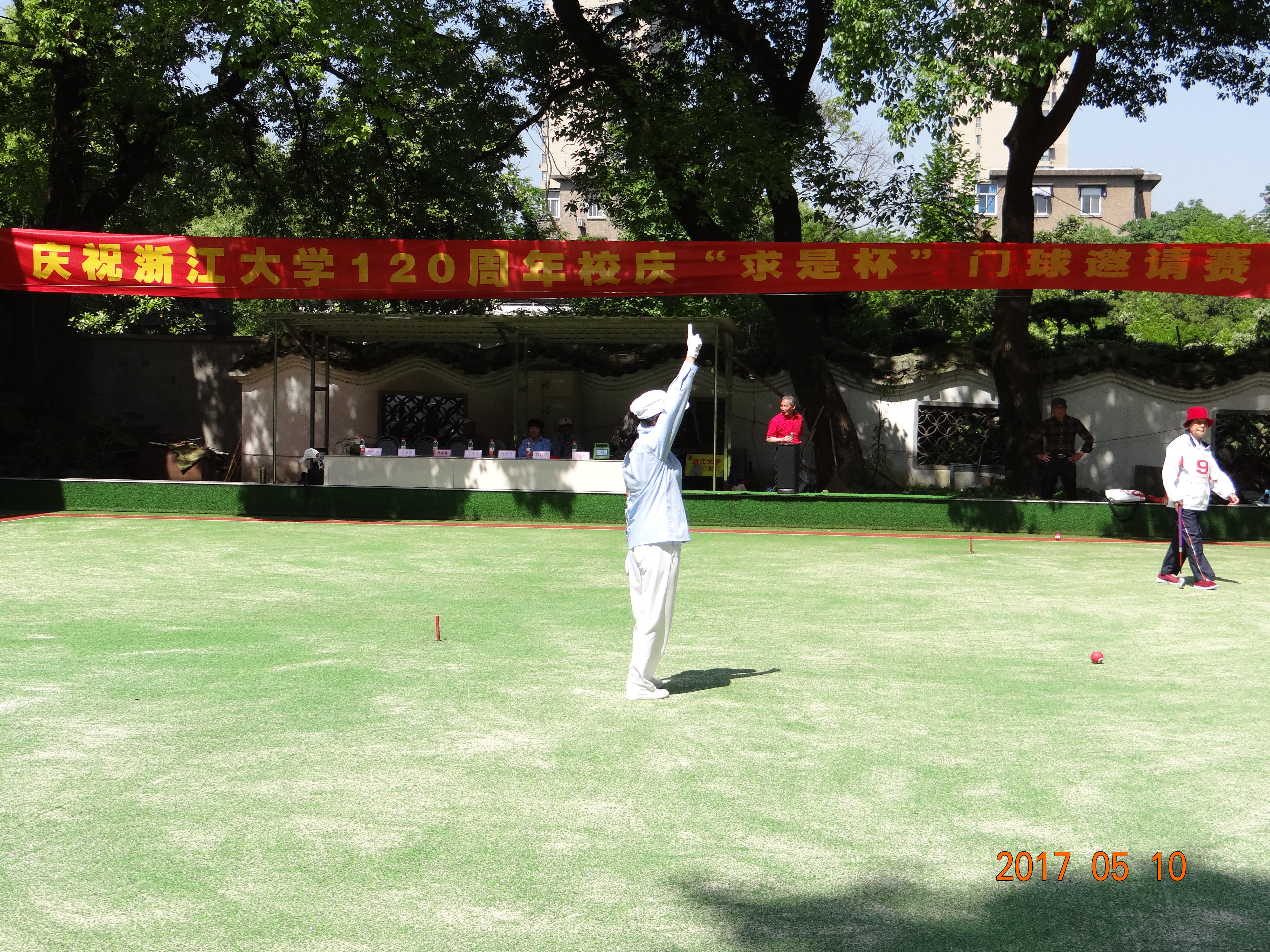 在我校即将迎来建校120周年华诞之际,校“求是杯”老年人门球邀请赛于5月10至13日在华家池校区隆重举行,浙江大学等32支在杭老年门球队共224名运动员参赛,比赛分4天采取分组单循环制进行。我校的两支参赛队积极投入比赛,老人们以饱满的热情为亲爱的母校庆生。