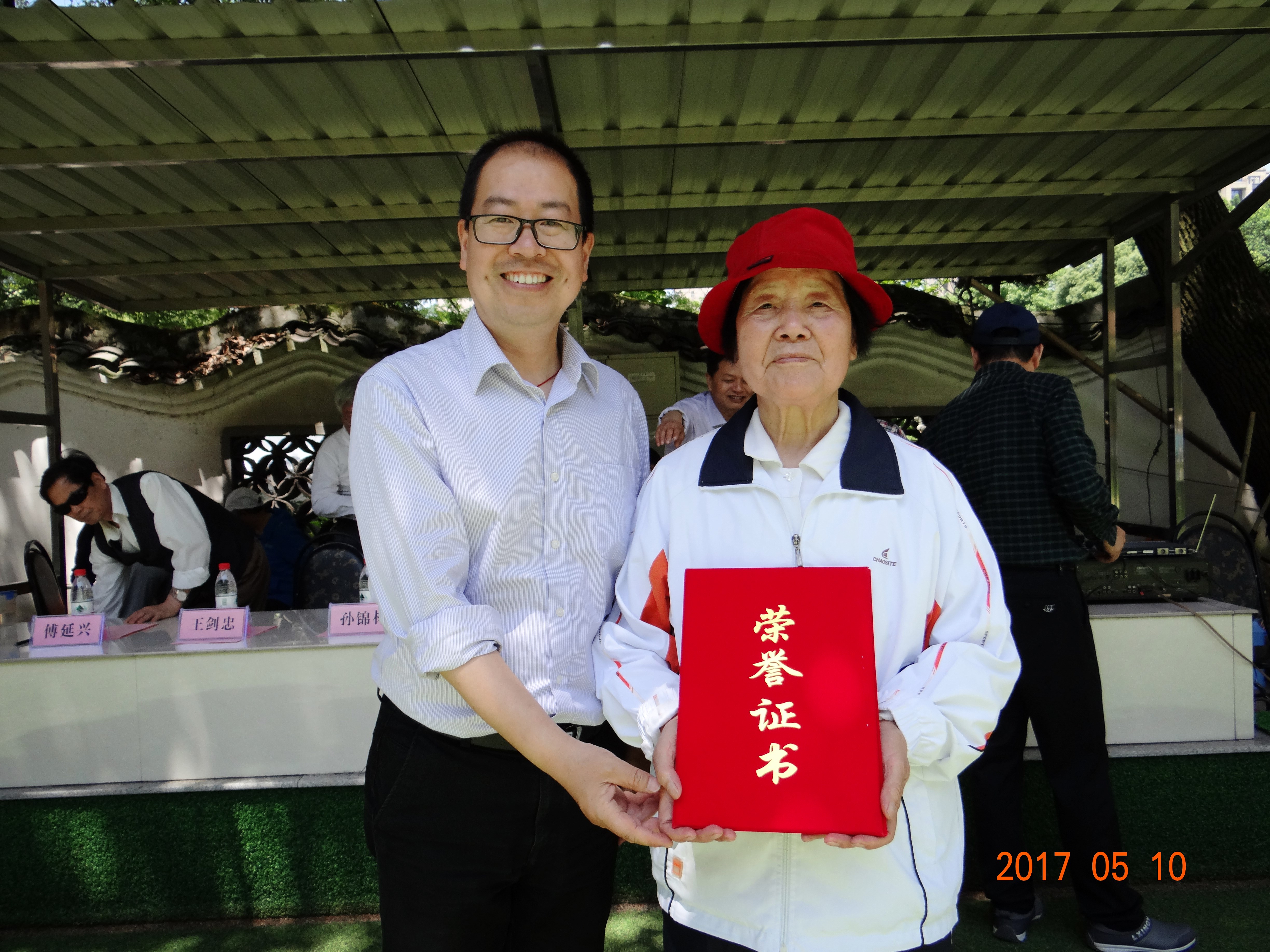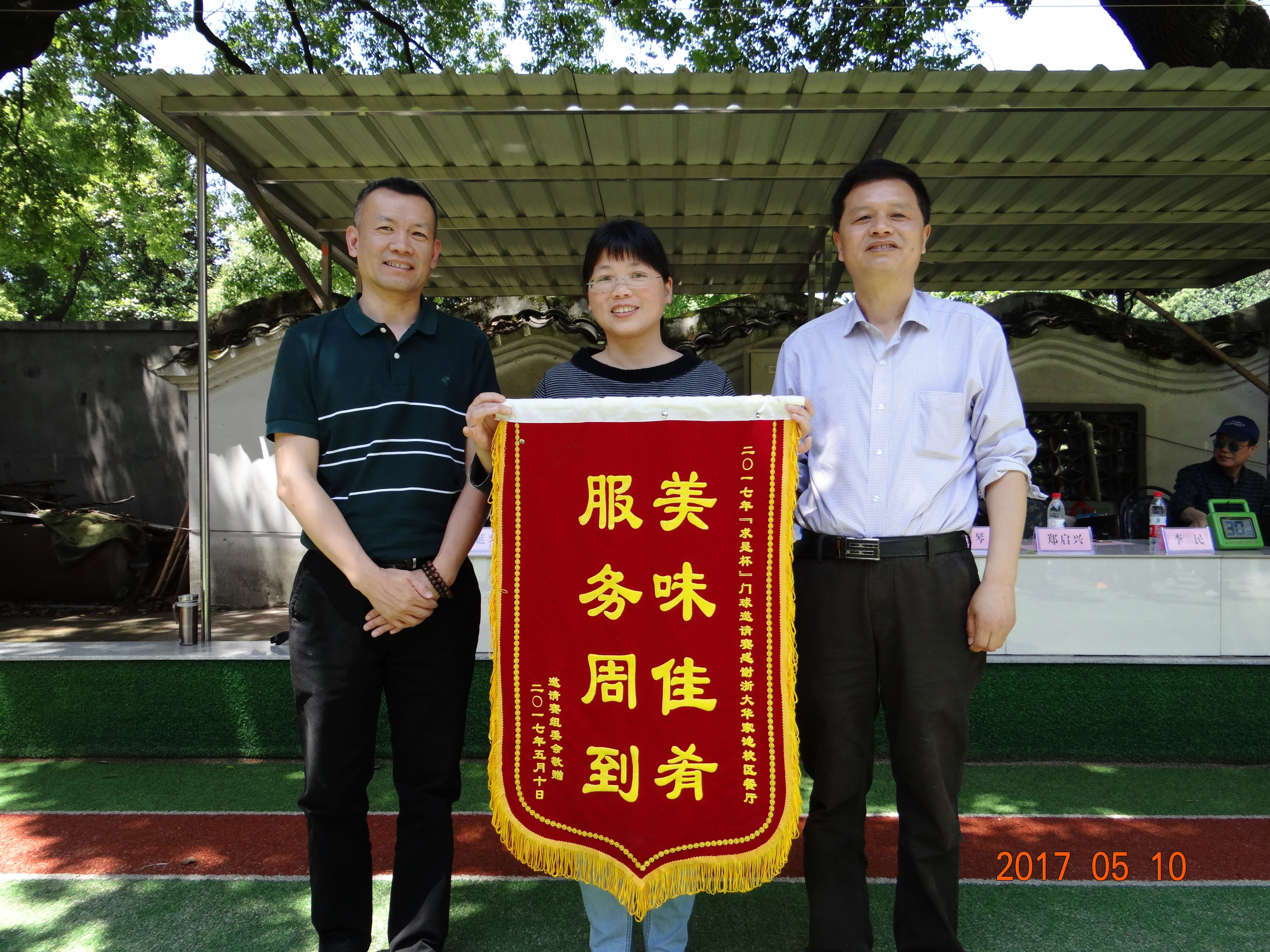 经过四天的角逐,我校老年门球队荣获一等奖,王庆文等领导先后向获奖门球队颁发了荣誉证书,王剑忠、李民向华家池校区食堂赠送锦旗。老人们以优异的比赛成绩、最美的夕阳风采为即将迎来百廿岁生日的母校献了一份大礼。