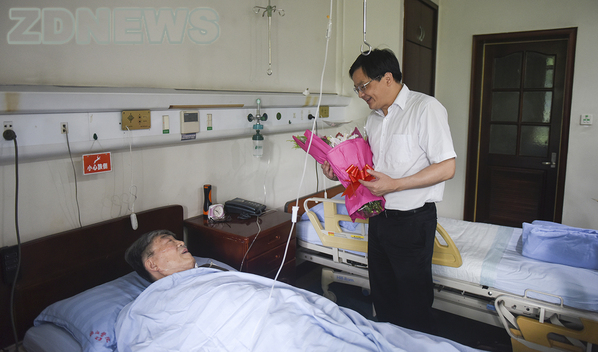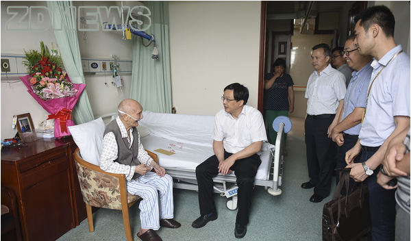 6月28日,在建党96周年即将到来之际,浙江大学党委副书记胡旭阳代表学校前往浙江医院,看望慰问住院疗养的老党员。几位老人在校工作几十年,为浙大的成长和发展作出了巨大贡献,其中黄固和姚力老师都已百岁高龄。