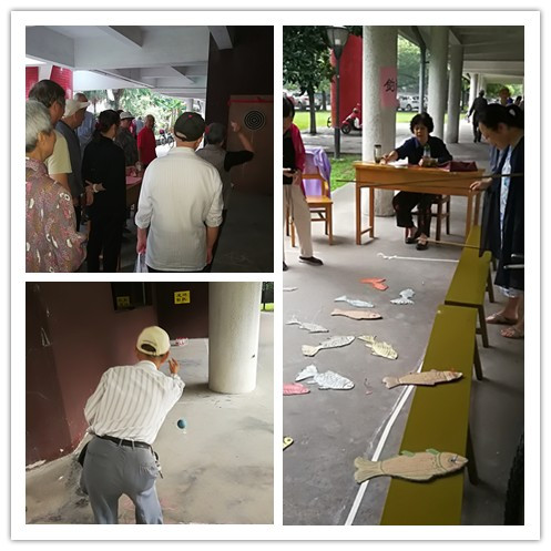 定点投篮、飞镖掷准、垒球掷准、皮球倒靶等在内的八个比赛项目集娱乐性、益智性与健身性于一体,牵动起老人们童年的记忆,唤起纯粹的儿时欢乐。“钓鱼”一族细心揣摩着控制的技巧,投篮者们潜心练习着掷准的技巧—他们专业的姿态招式和帅气的掷准瞬间让人怎么都看不出是耄耋之年甚至鲐背之年的老人,更有101岁高龄的的唐觉教授也坐着轮椅来到现场参与了有趣的活动。老同志们说,秋高气爽的日子里看看秋景、玩玩游戏、聚聚好友,感觉真的棒极了!